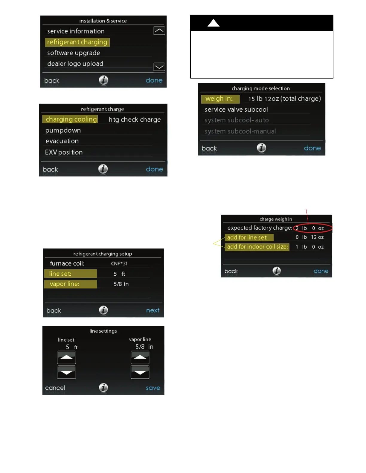 indoor coil, line set, and vapor line settings. Outdoor unit is