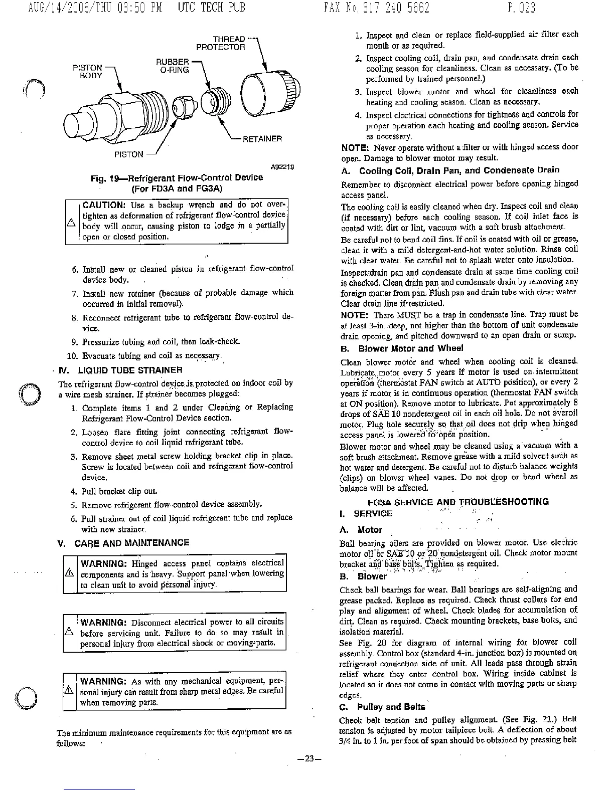 Bryant FA4A - FG3 A Service and Troubleshooting; FG3 A Motor Service and Maintenance; FG3 A Blower Maintenance