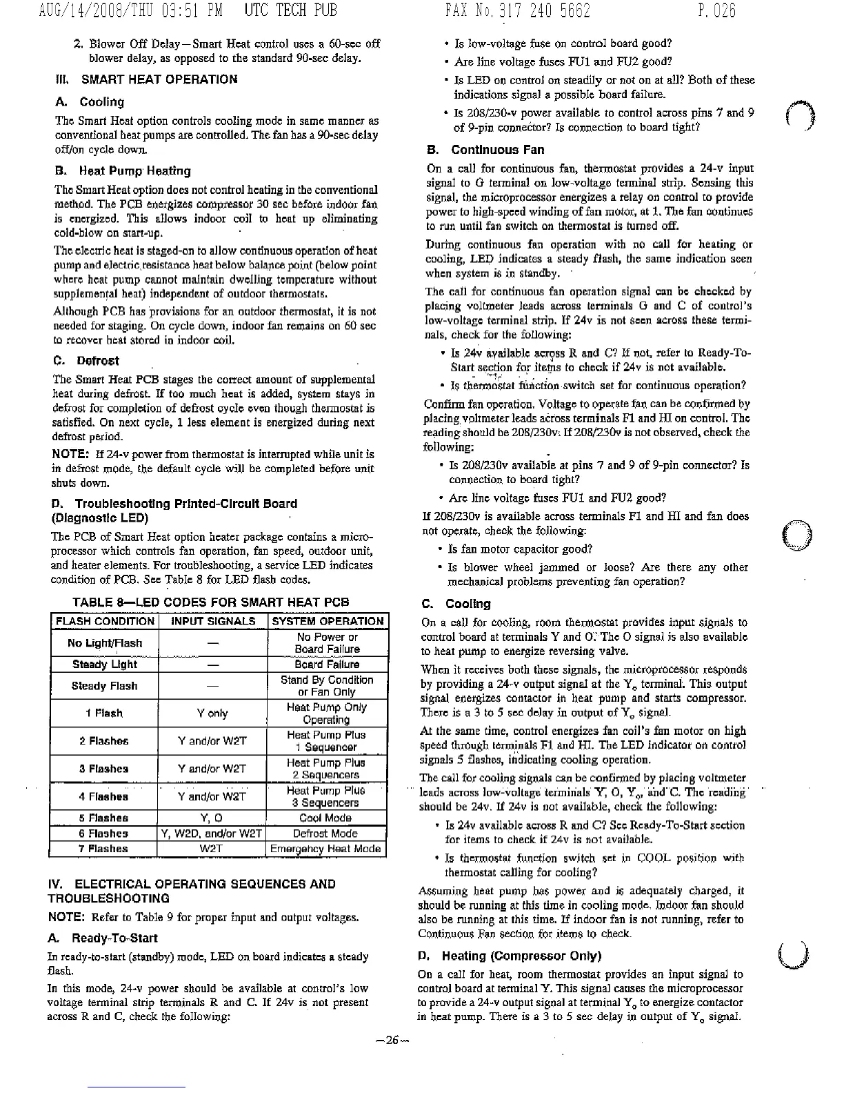 Bryant FA4A - Electrical Operating Sequences and Troubleshooting; Ready-To-Start Operation and Checks; Continuous Fan Operation; Smart Heat Cooling Operation