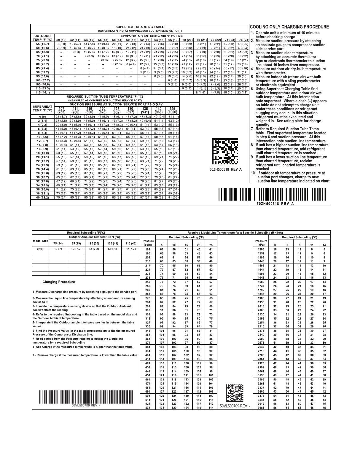 Superheat charging table is derived from optimum performance point. (95_F[35_C] outdoor ambient and (80_F[27_C] dry bulb; 67_F[19_C] wet bulb indoor