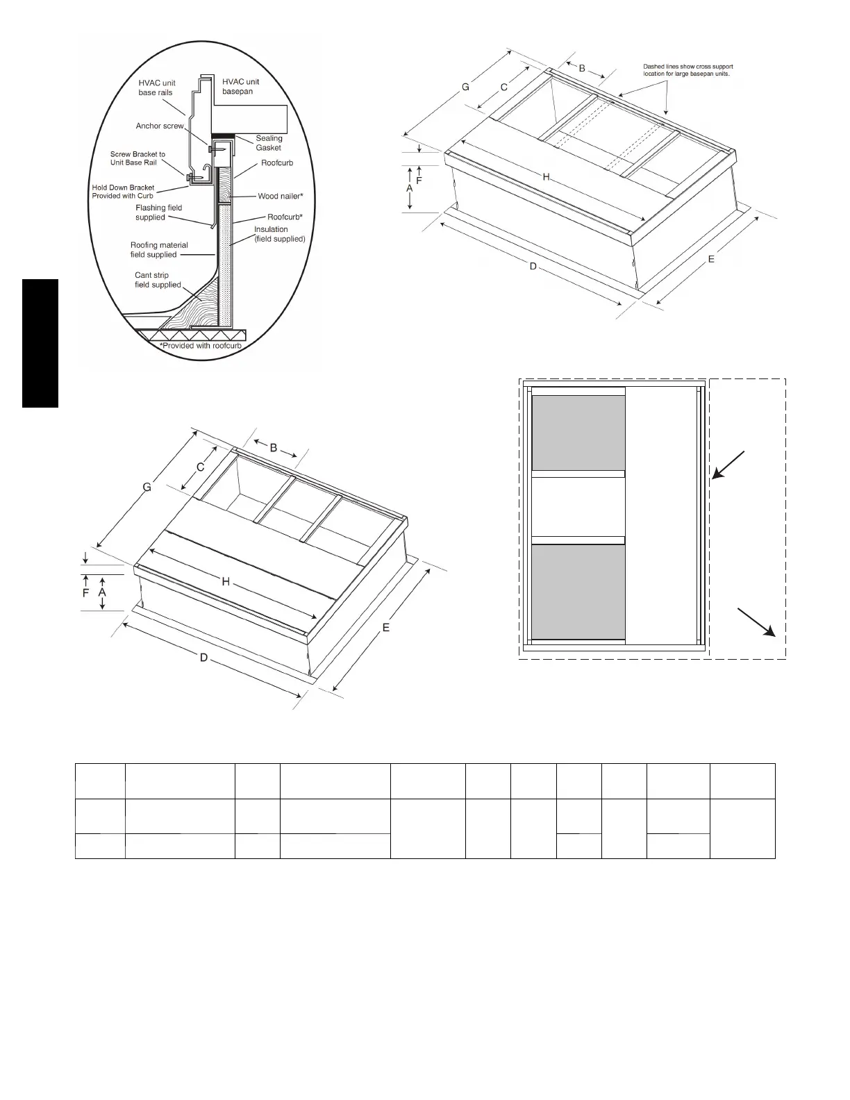 * Part Number CPRCURB011B00 can be used on both small and large basepan units. The cross supports must be located based on wheth er the unit is a small