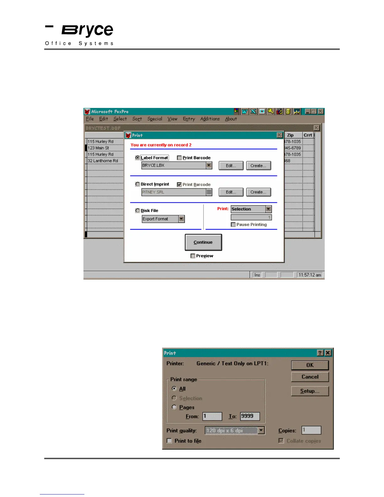 Select the BRYCE.LBX label template.