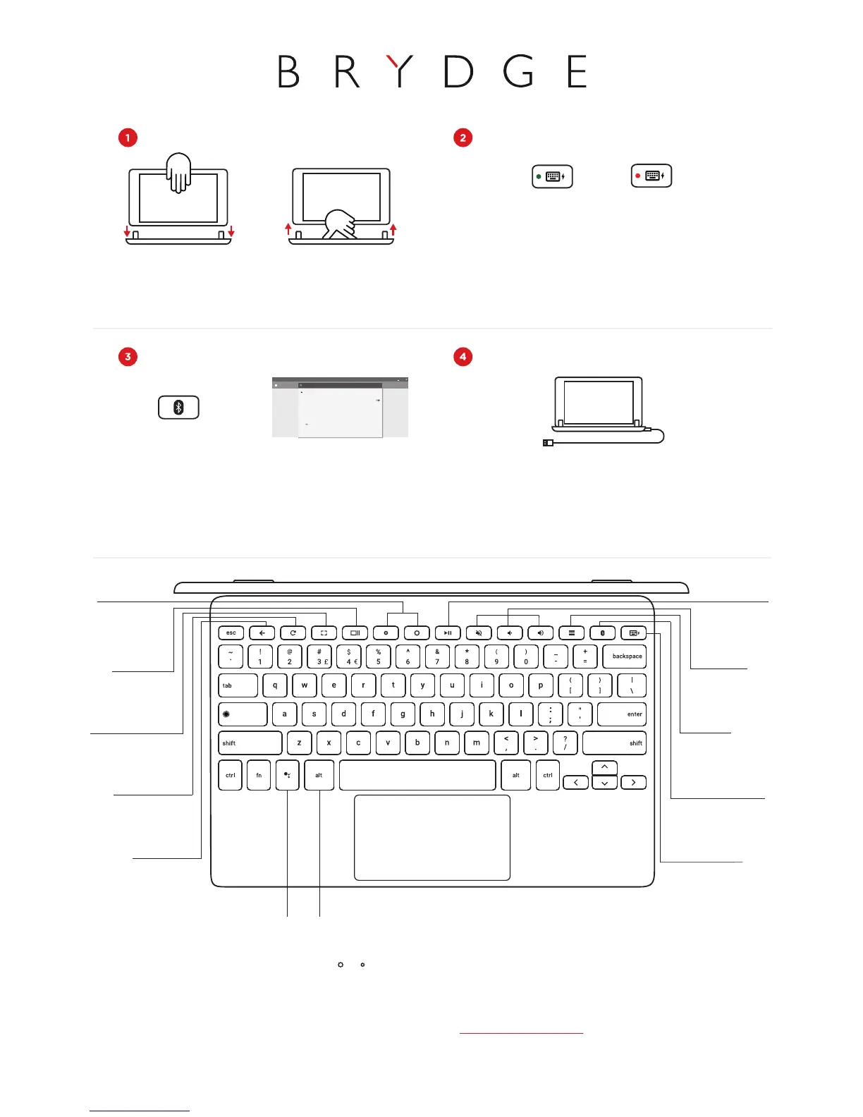 unauthorized to sell Brydge-branded product, including on eBay.com. Further warranty information is available at www.brydgekeyboards.com/warranty. To obtain warranty service, contact Brydge using the information on www.brydgekeyboards.com/warran-