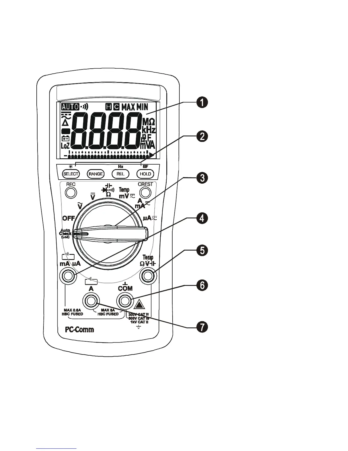 The analog bar graph provides a visual indication of measurement like a traditional analog meter