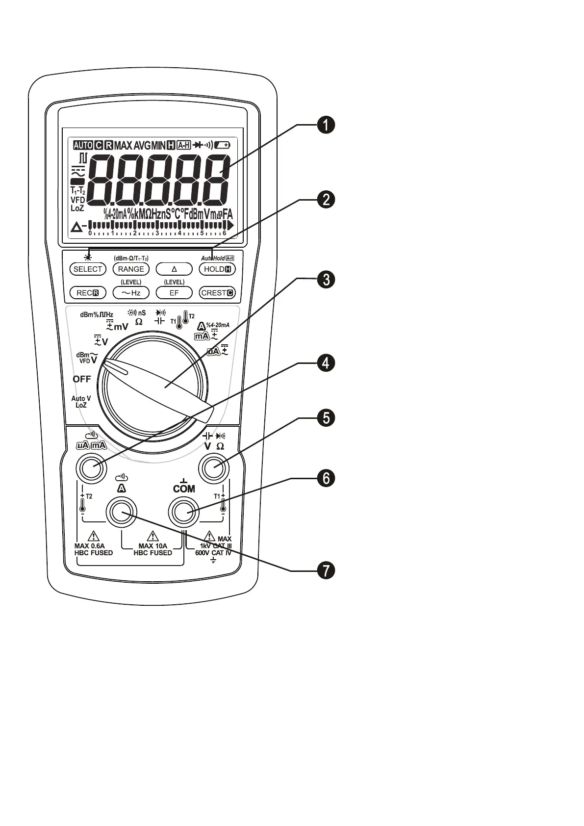 The analog bar graph provides a visual indication of measurement like a traditional