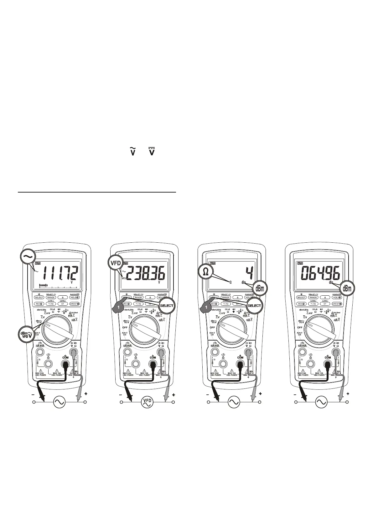 Inputs are made via the test lead terminals V-COM. Press the SELECT button