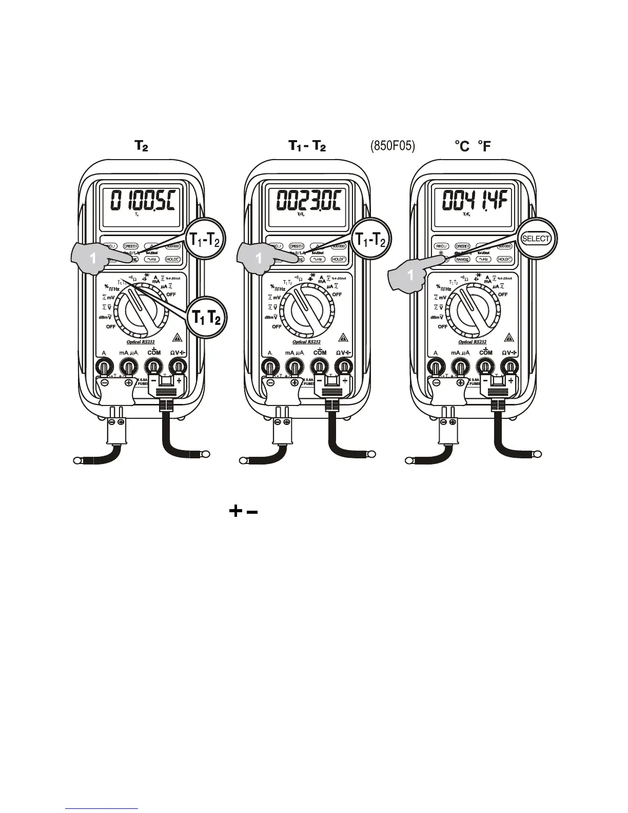 polarities. Dual channels T1-T2 readings require 2