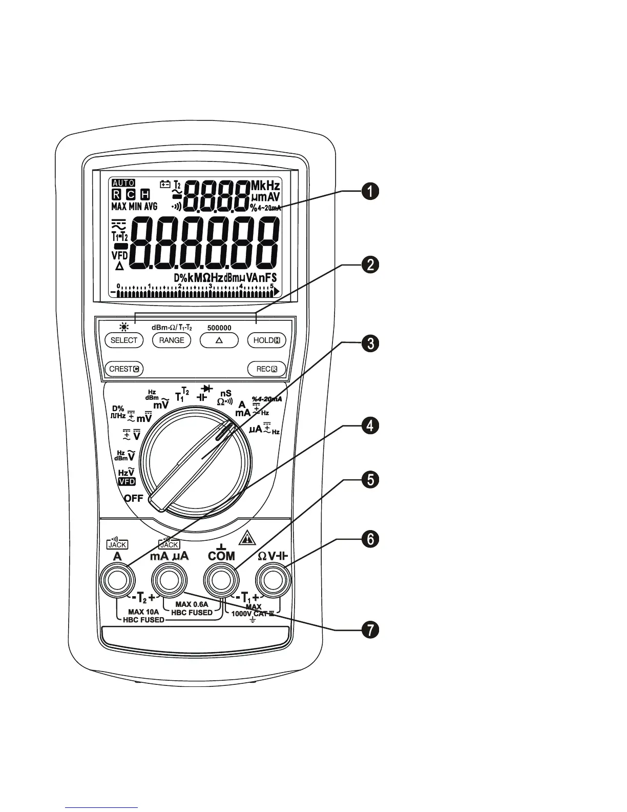 7) Input Jack for milli-amp,