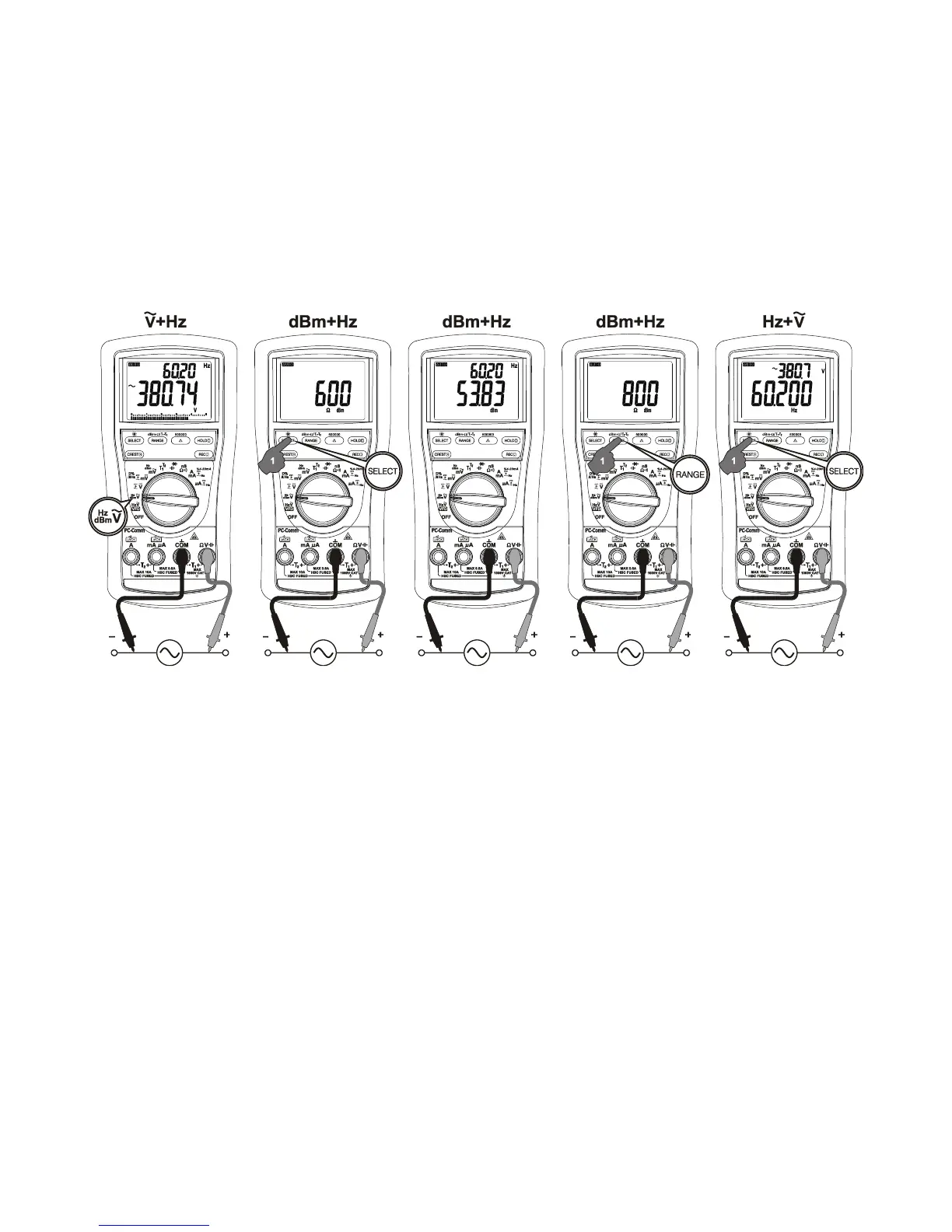 manually. If the Hz reading becomes unstable, select higher voltage range to avoid