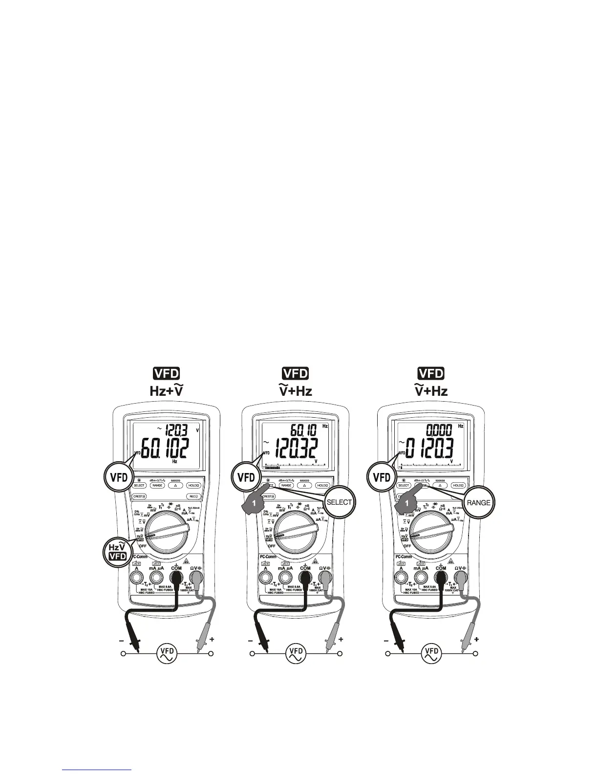 Frequency Drives (VFD) measurements. Press the RANGE button momentarily to