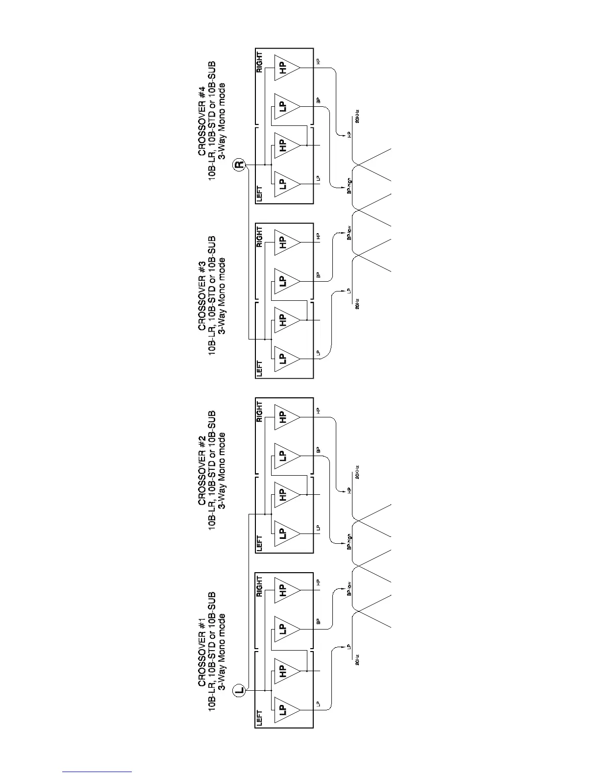 Bryston 10B - Stereo 4-Way Configuration with Multiple 10 B Units; Crossover Unit 1 in 4-Way Stereo; Crossover Unit 2 in 4-Way Stereo; Crossover Unit 3 in 4-Way Stereo