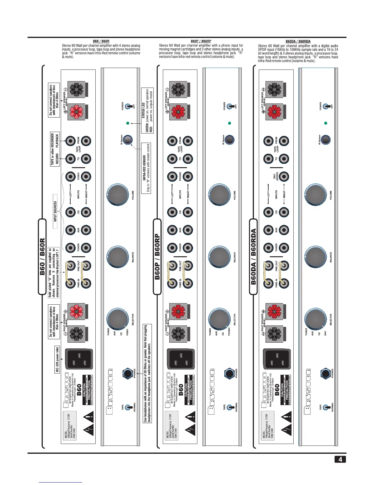 Bryston B60 - Front & Rear Panel Illustrations