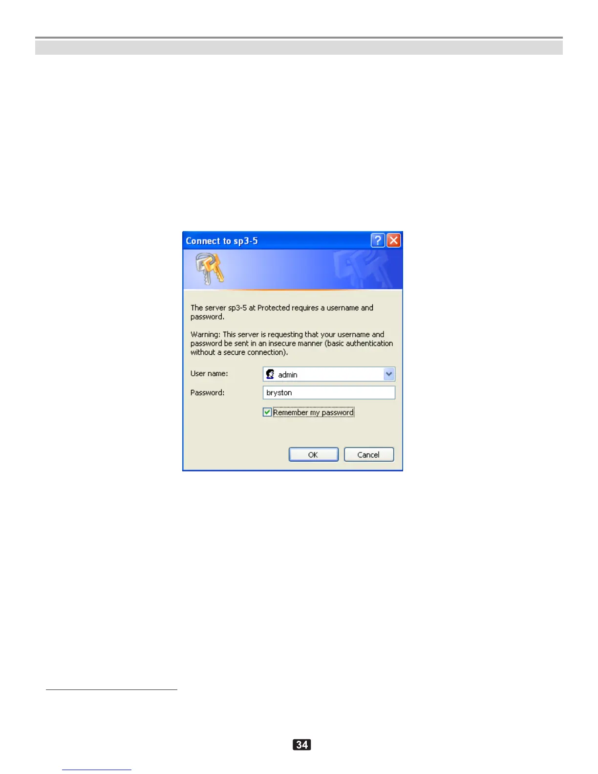 Insert the user name admin and password bryston as shown above and click OK button