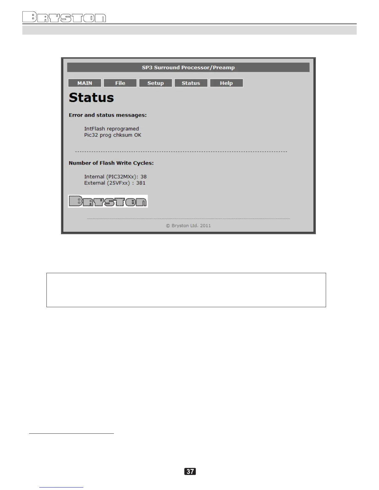 Status screen displays the current “Error and Status messages” (if any), and “Number of Flash Write Cycles”