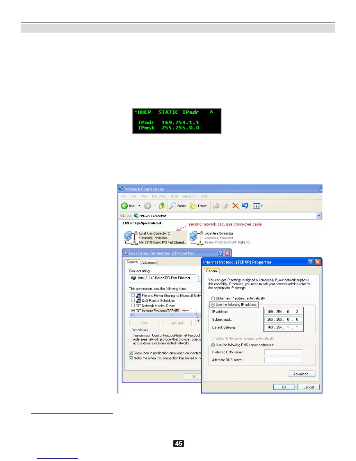 3. Host PC setup for static IP address.