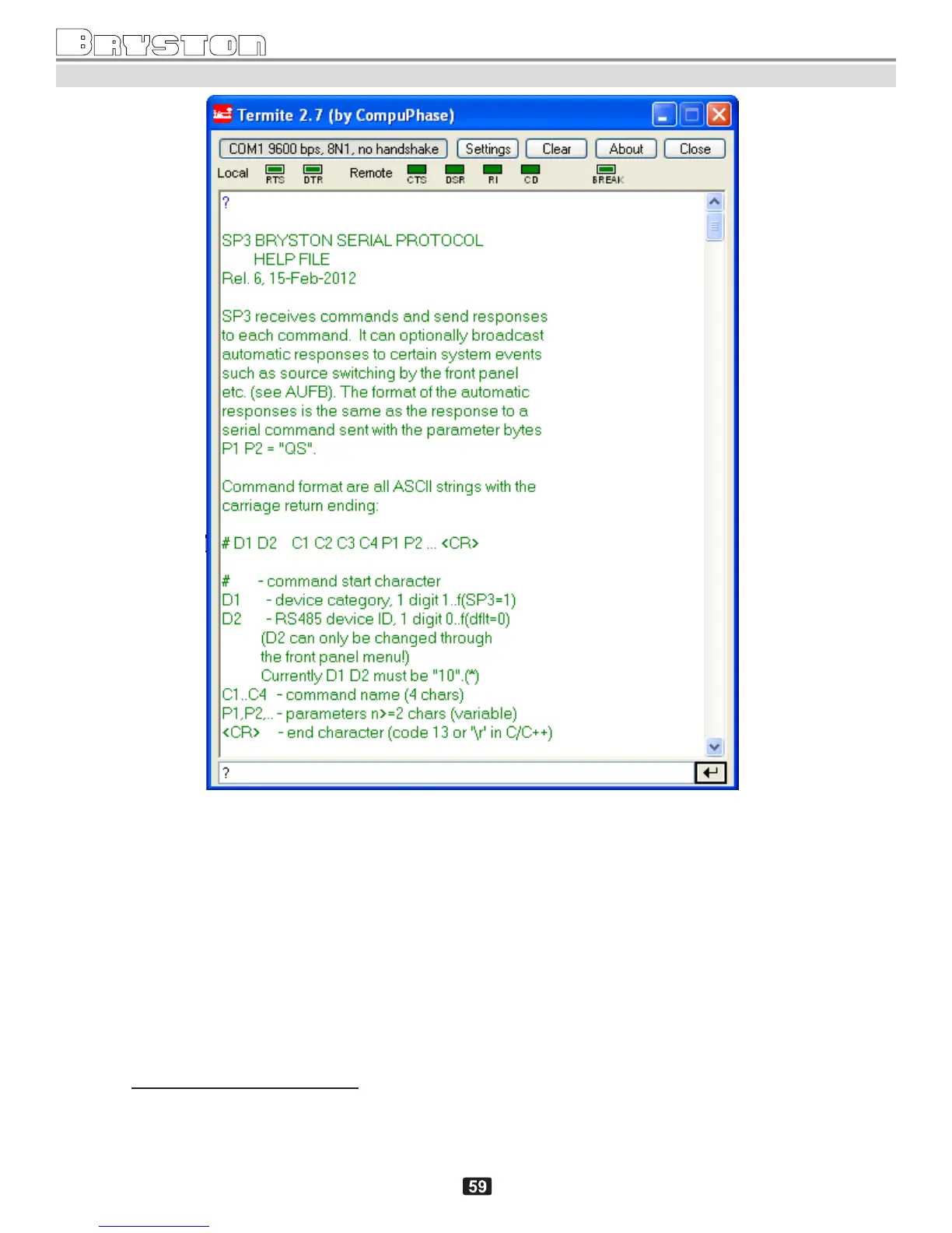 SP3 Control via RS232 & TCP/IP Page 3 of 7