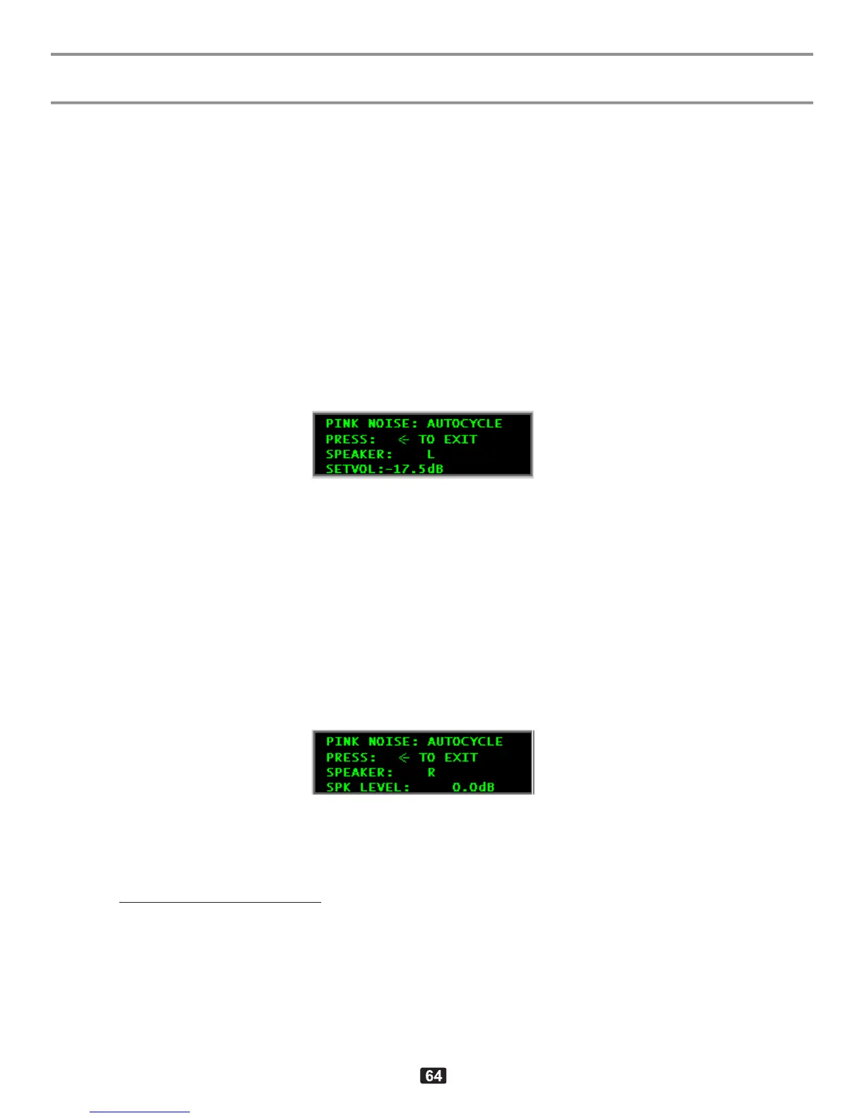 If you press right arrow again it will go into the "Pink Noise" screen (see above) and will