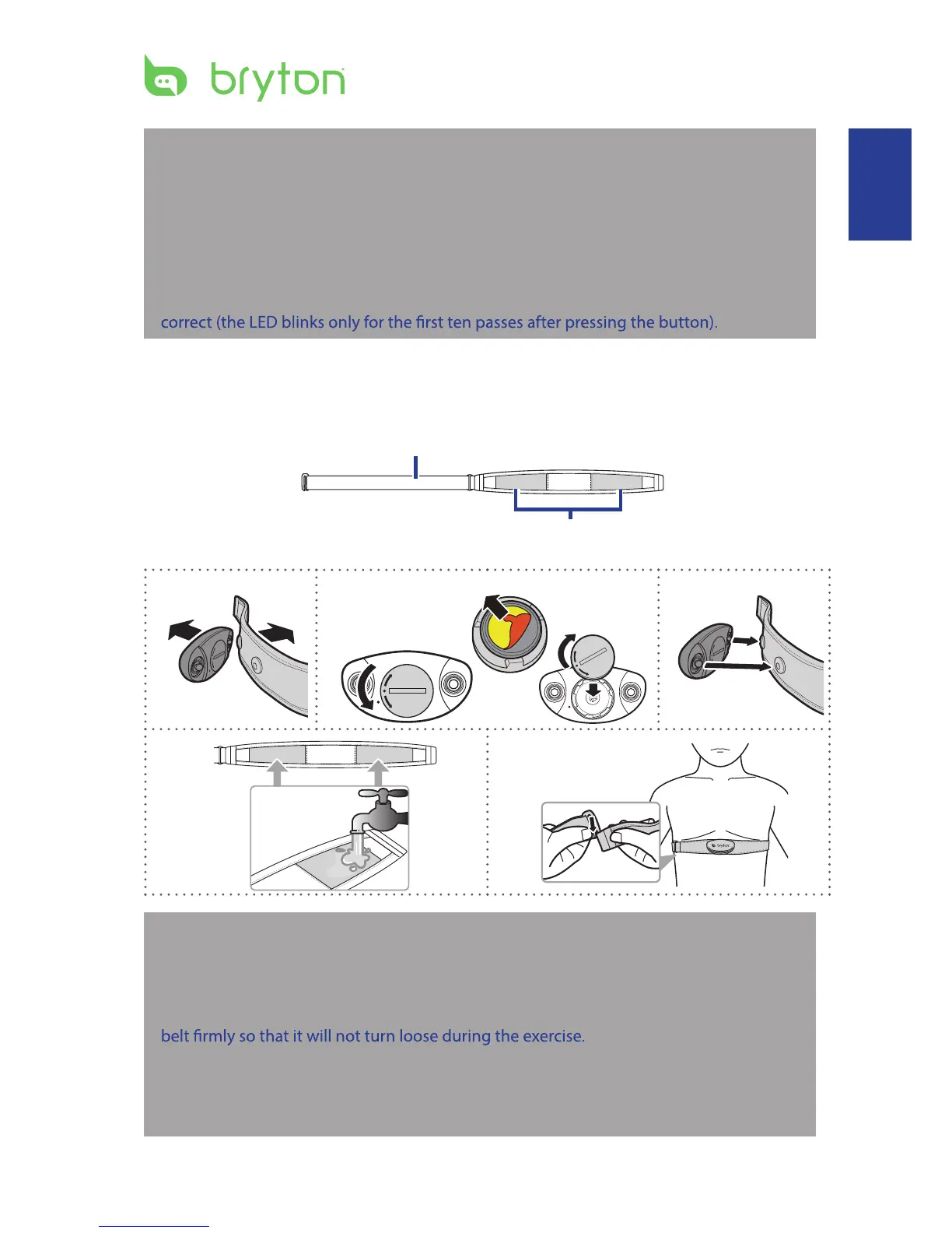 chest). The Bryton logo shown on the sensor should be facing upward. Tighten the elastic