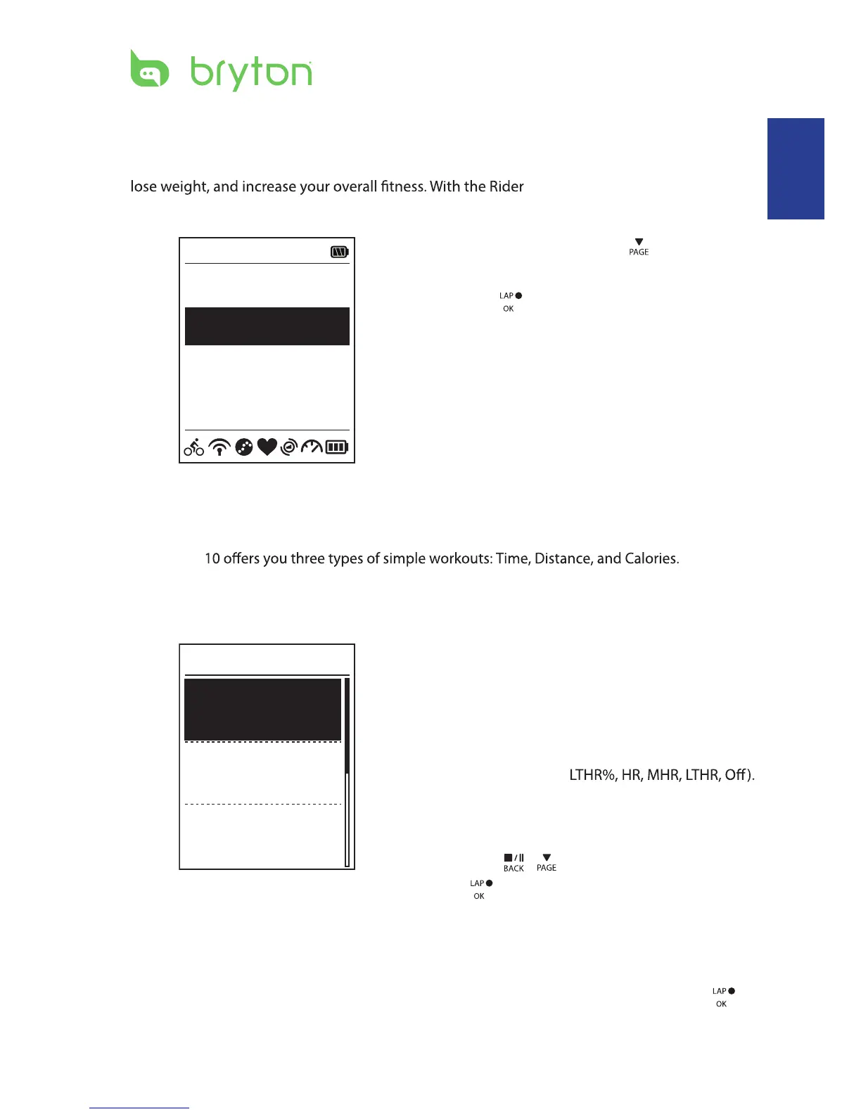 set simple/interval workouts and use the Rider 310 to track your training or workout progress.