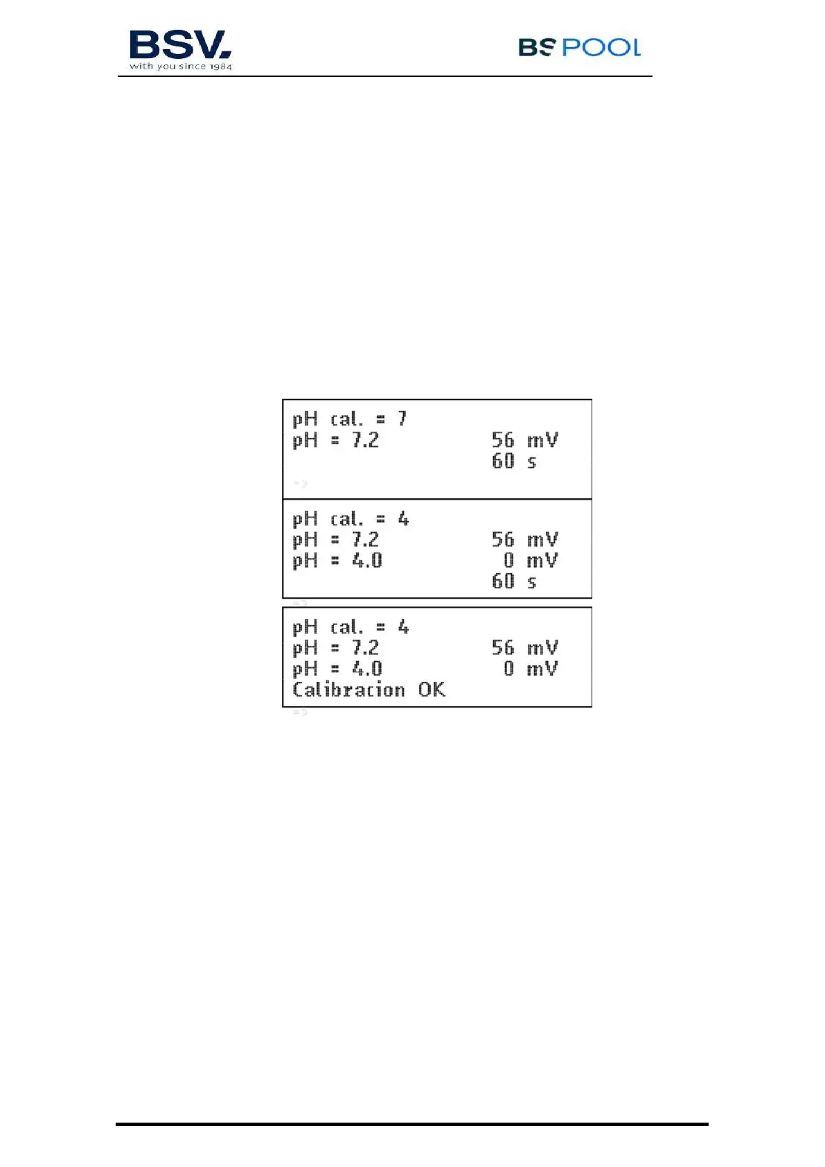 En el control, vaya a “Menú” – “pH” – Calibración – “S”. La 1ª línea del