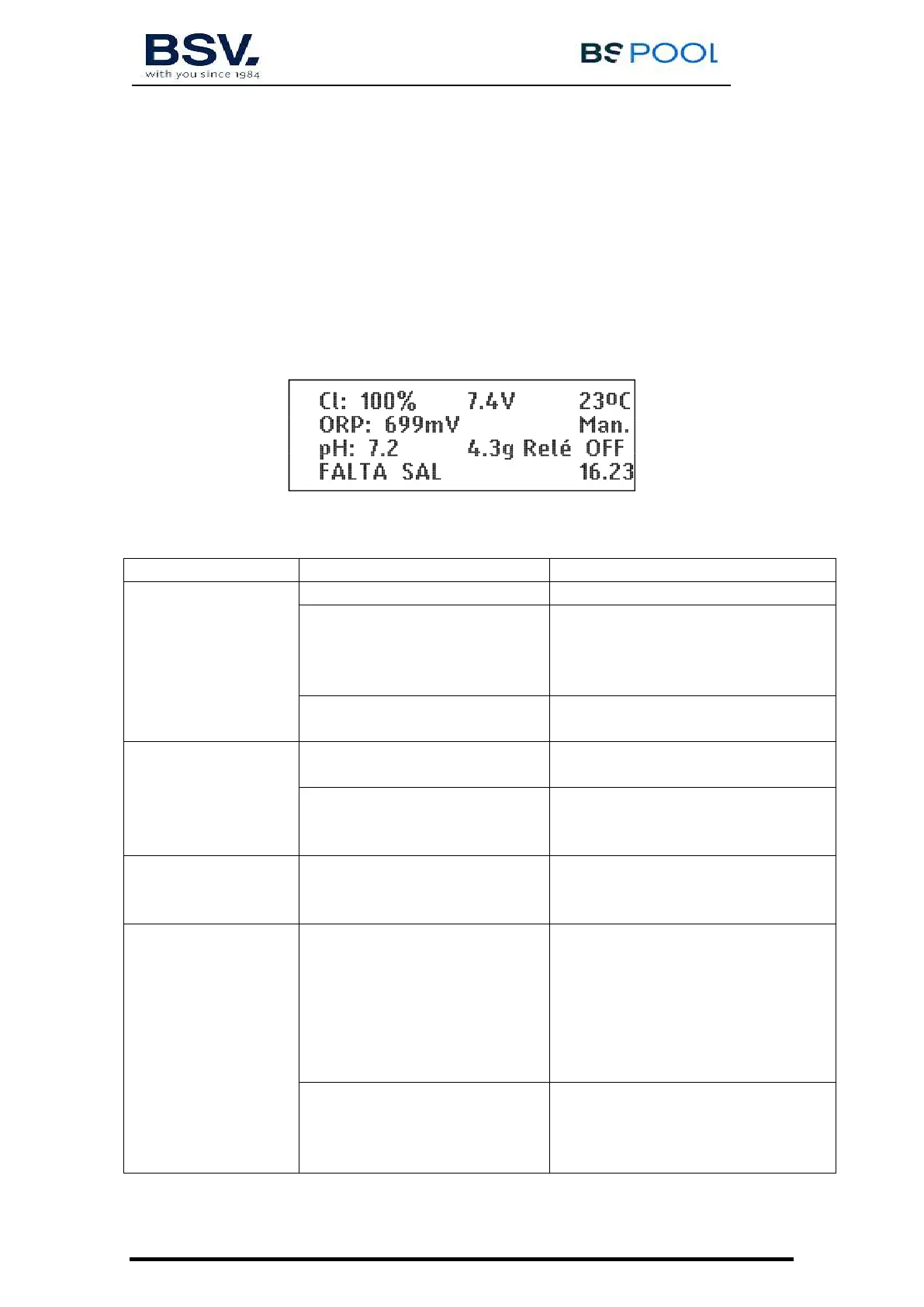 mostrarán un mensaje de alarma en la 4ª línea de la pantalla, junto a un