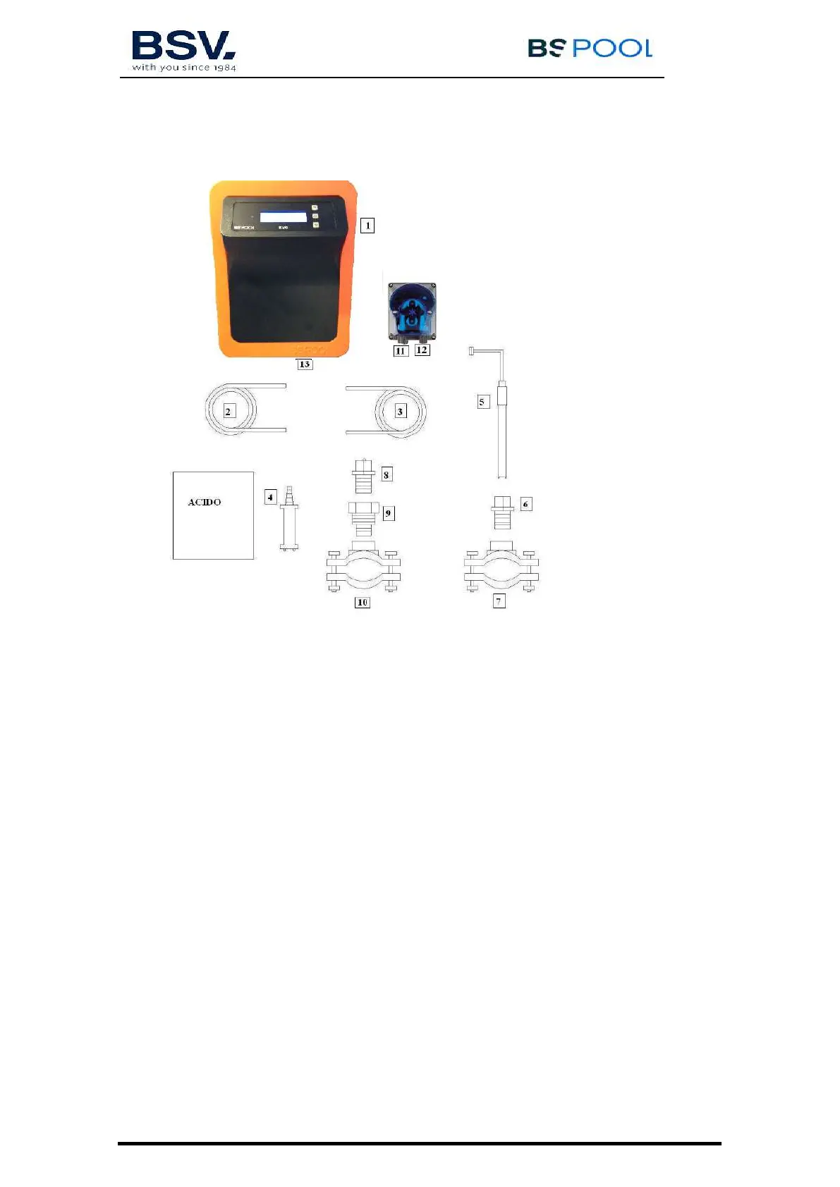 3- Connect one end of the suction tube (2) to the PH control inlet (11).