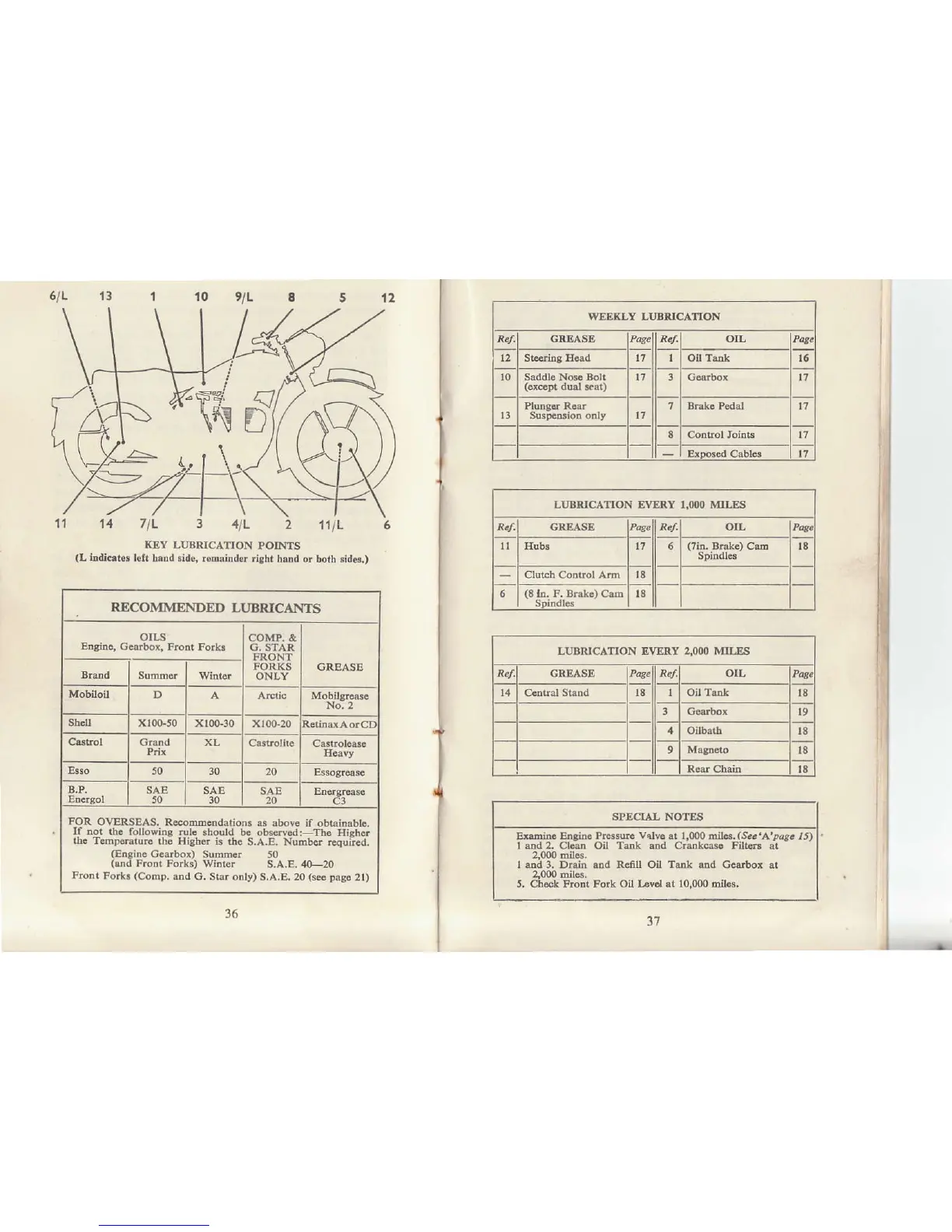 BSA B31 - Key Lubrication Points; Recommended Lubricants