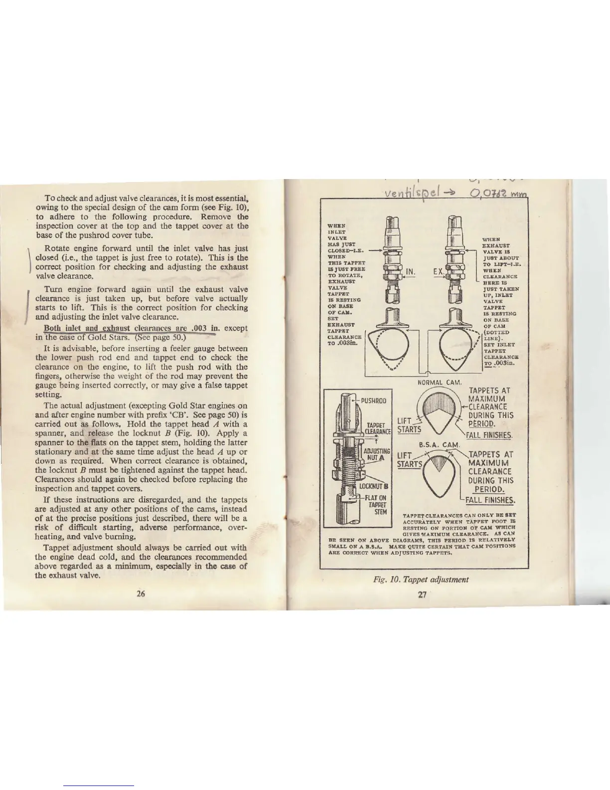 Fig. 10. Tappet adjustmen
