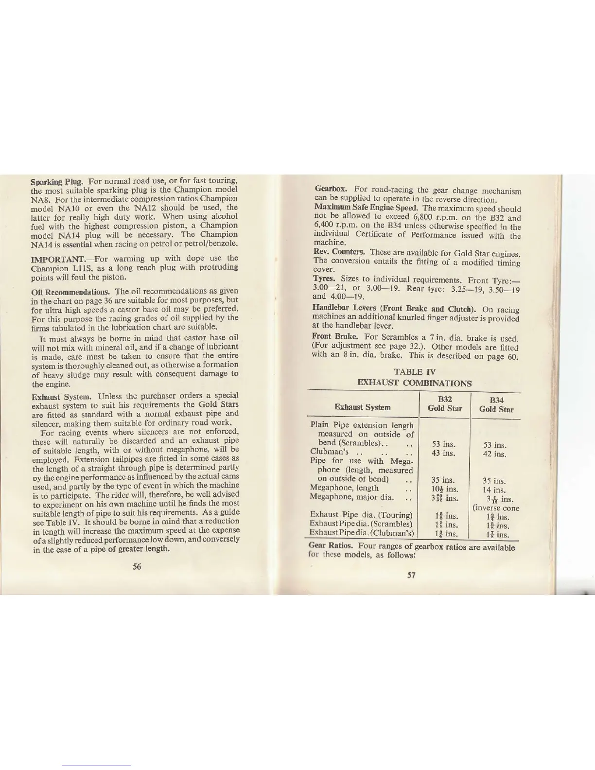 BSA B33 - Technical Specifications and Options; Sparking Plug and Oil Recommendations; Exhaust System and Gearbox Options