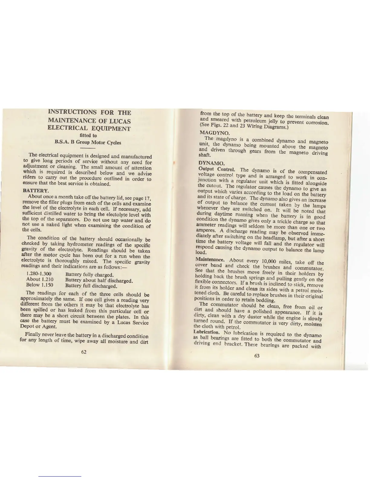 BSA B33 - Electrical Equipment Maintenance; Battery Maintenance; Dynamo and Magdyno
