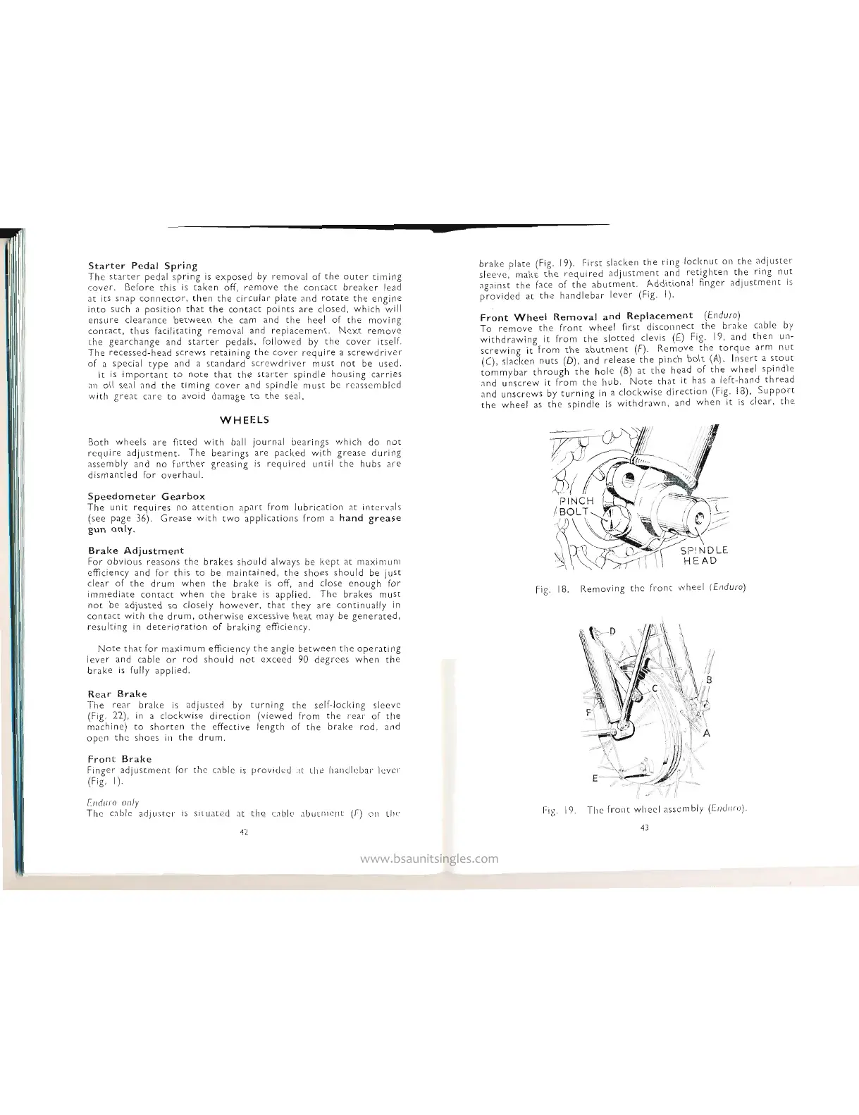 BSA B44 - Wheels and Brake Adjustments; Wheel Bearings and Speedometer Gearbox; Brake System Adjustments