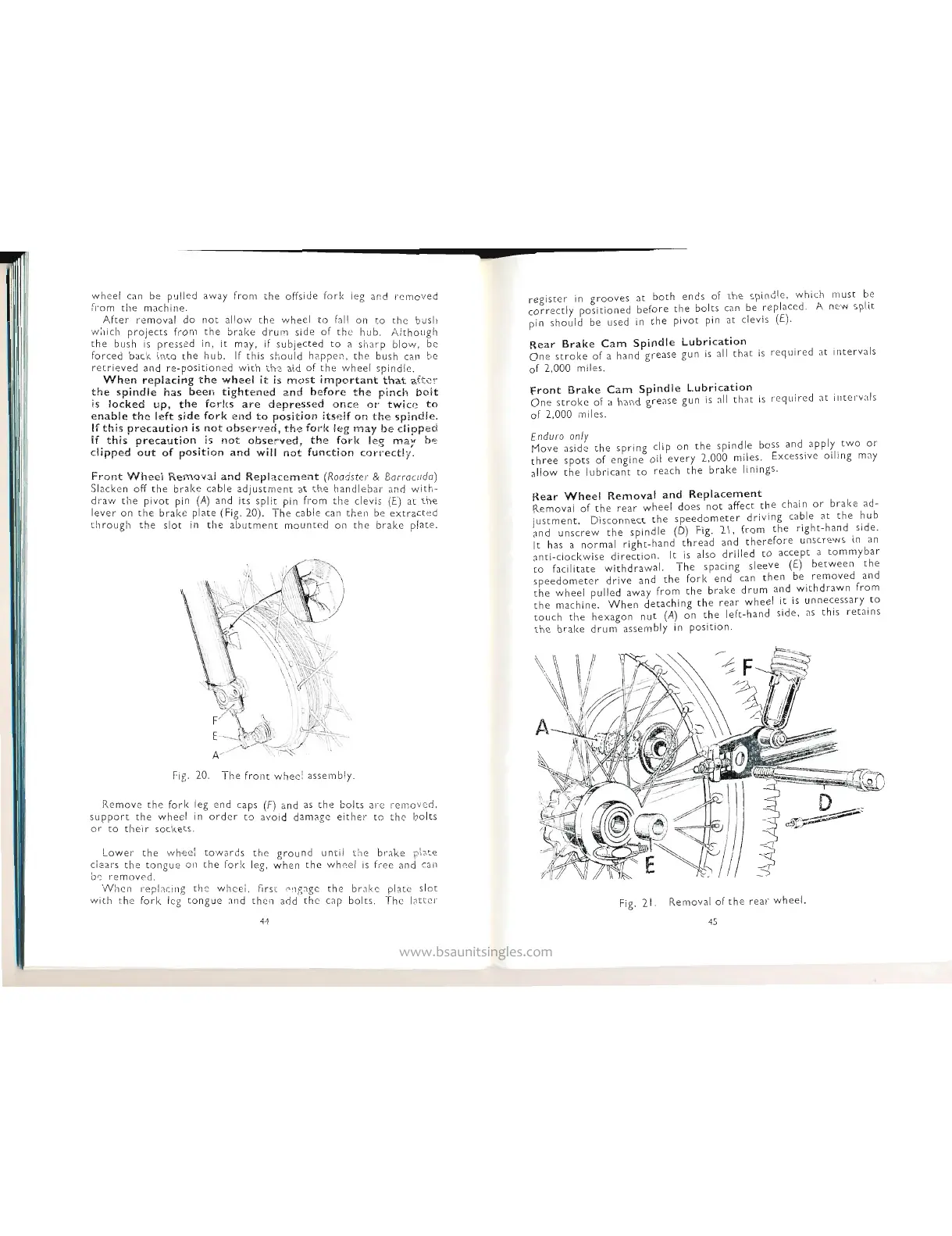 BSA B44 - Wheel Removal and Replacement; Front Wheel Removal and Replacement; Rear Wheel Removal and Cam Spindle Lubrication