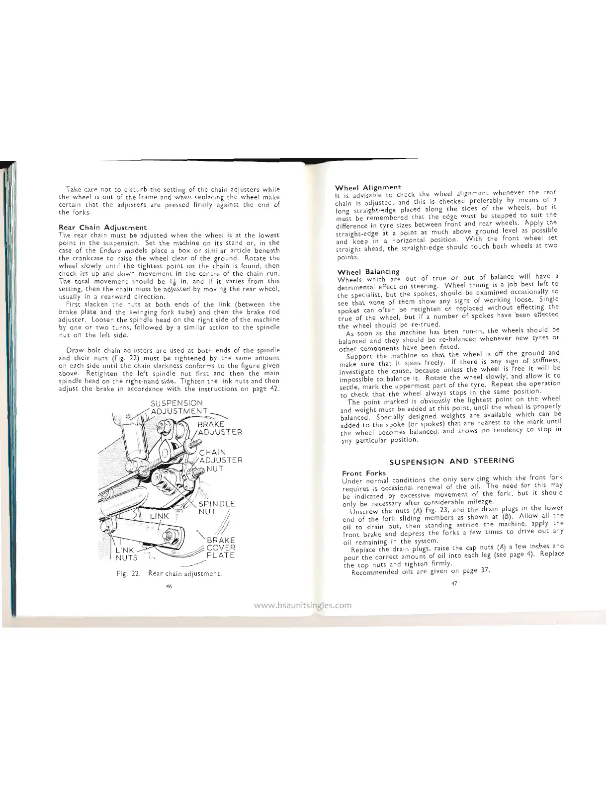 BSA B44 - Wheel Alignment and Suspension; Wheel Alignment and Balancing; Front Fork Servicing