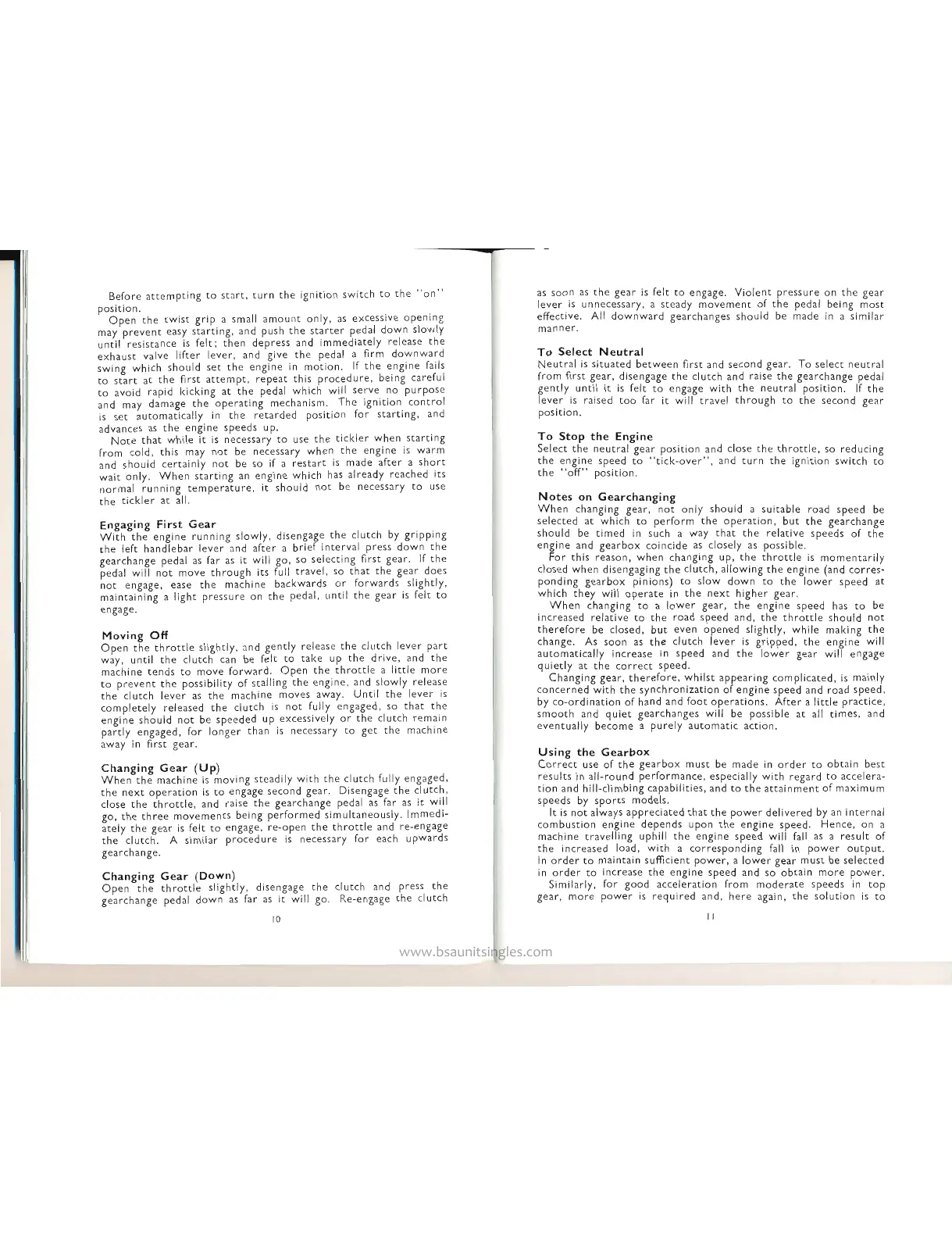 BSA B44 - Driving and Gearchanging; Moving Off and Changing Gears