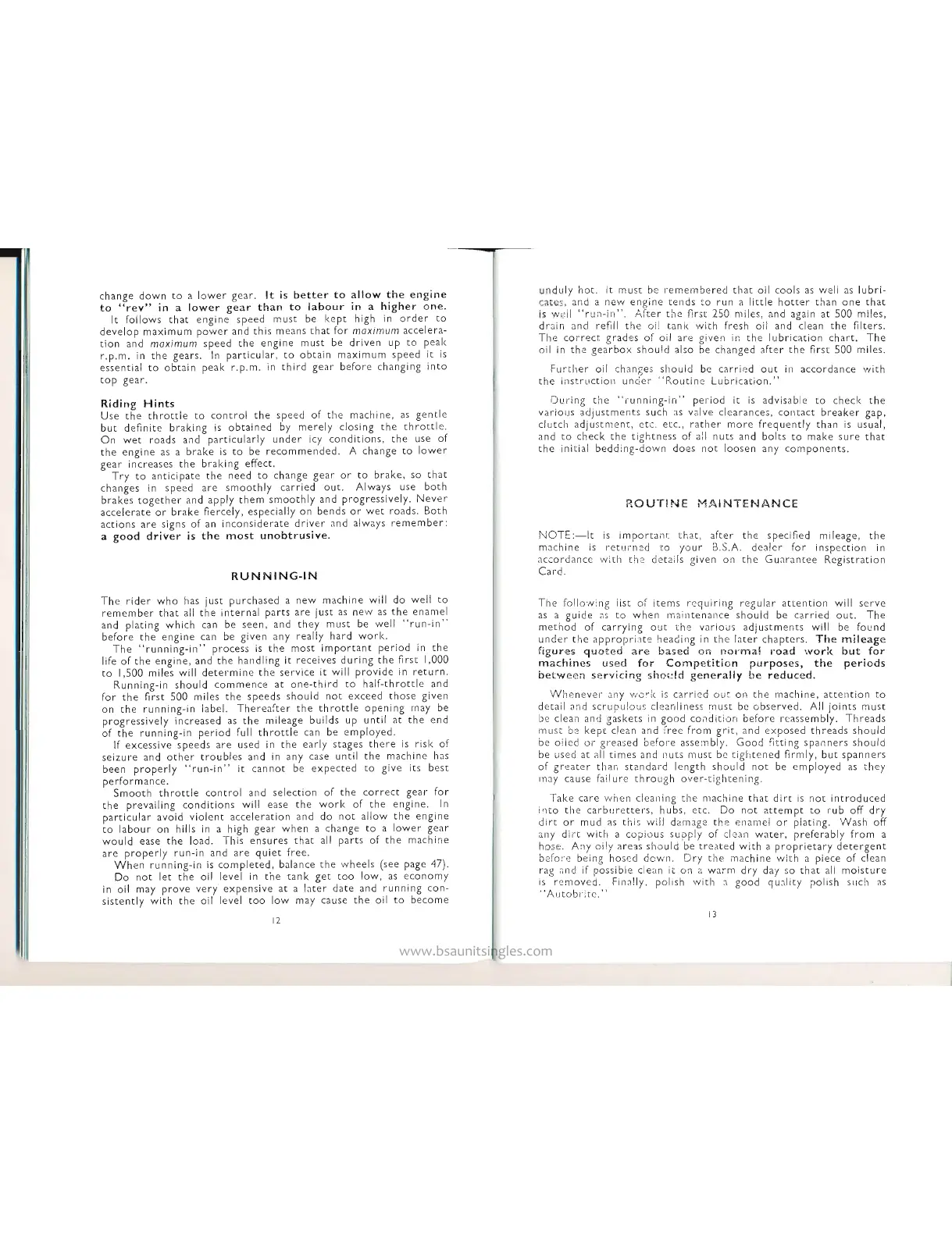 BSA B44 - Riding Advice and Running-In; Running-In Procedure