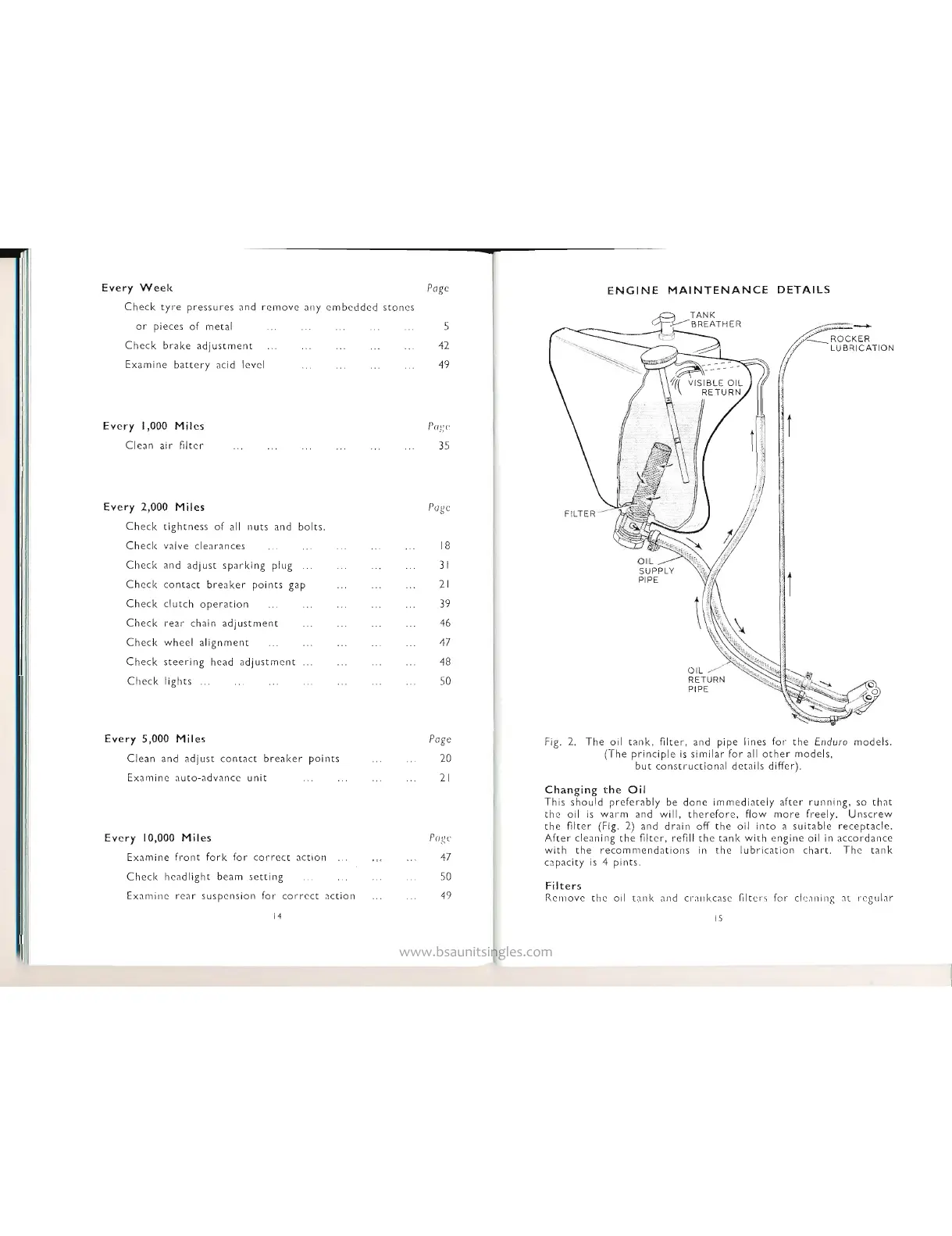 BSA B44 - Routine Maintenance Schedule; Maintenance Tasks by Mileage