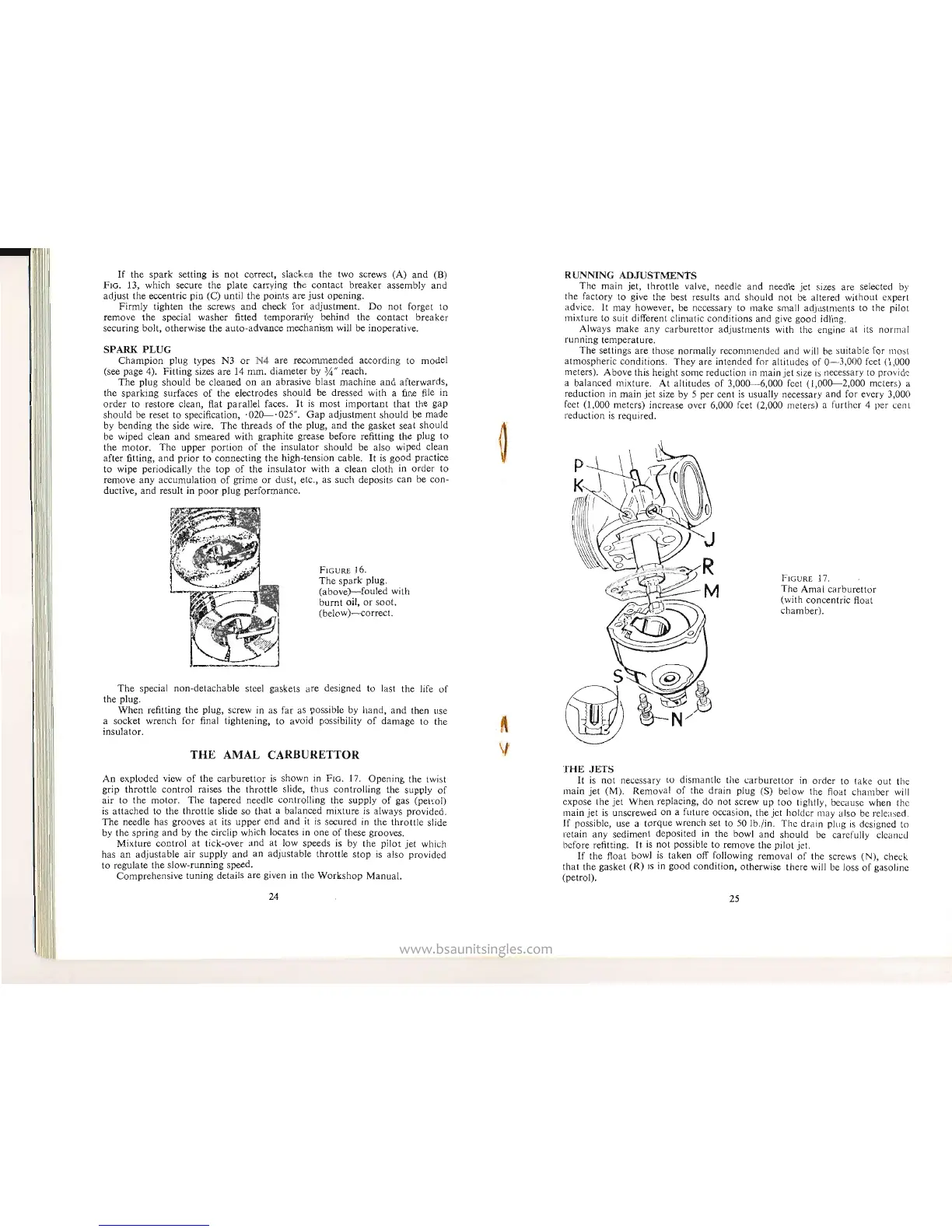 BSA b50 series - Spark Plug Maintenance; The Amal Carburettor; Carburettor Jets and Float Bowl
