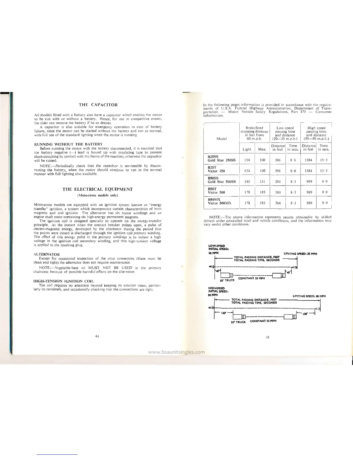 BSA b50 series - The Capacitor and Running Without Battery; Running Without the Battery; Electrical Equipment (Moto-cross Models); Alternator and Ignition Coil