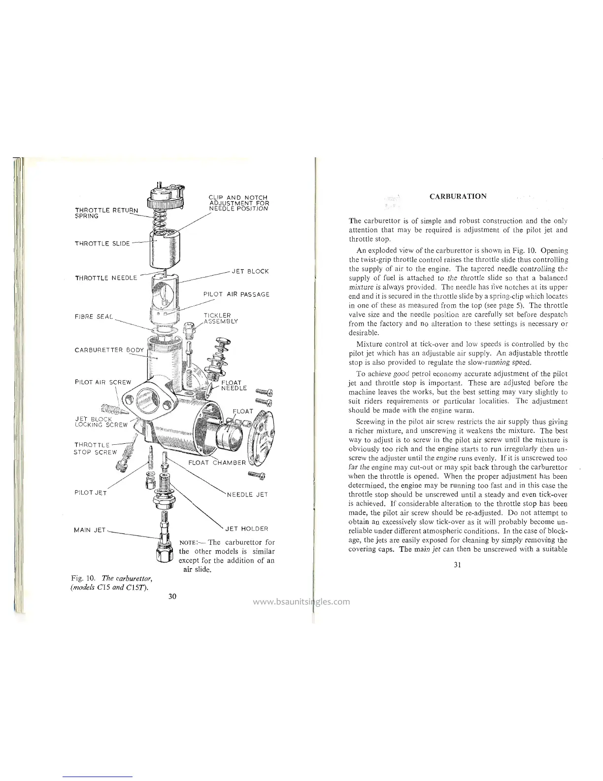 BSA C15 SS80 - CARBURATION AND AIR CLEANER; Carburettor Adjustment Guide