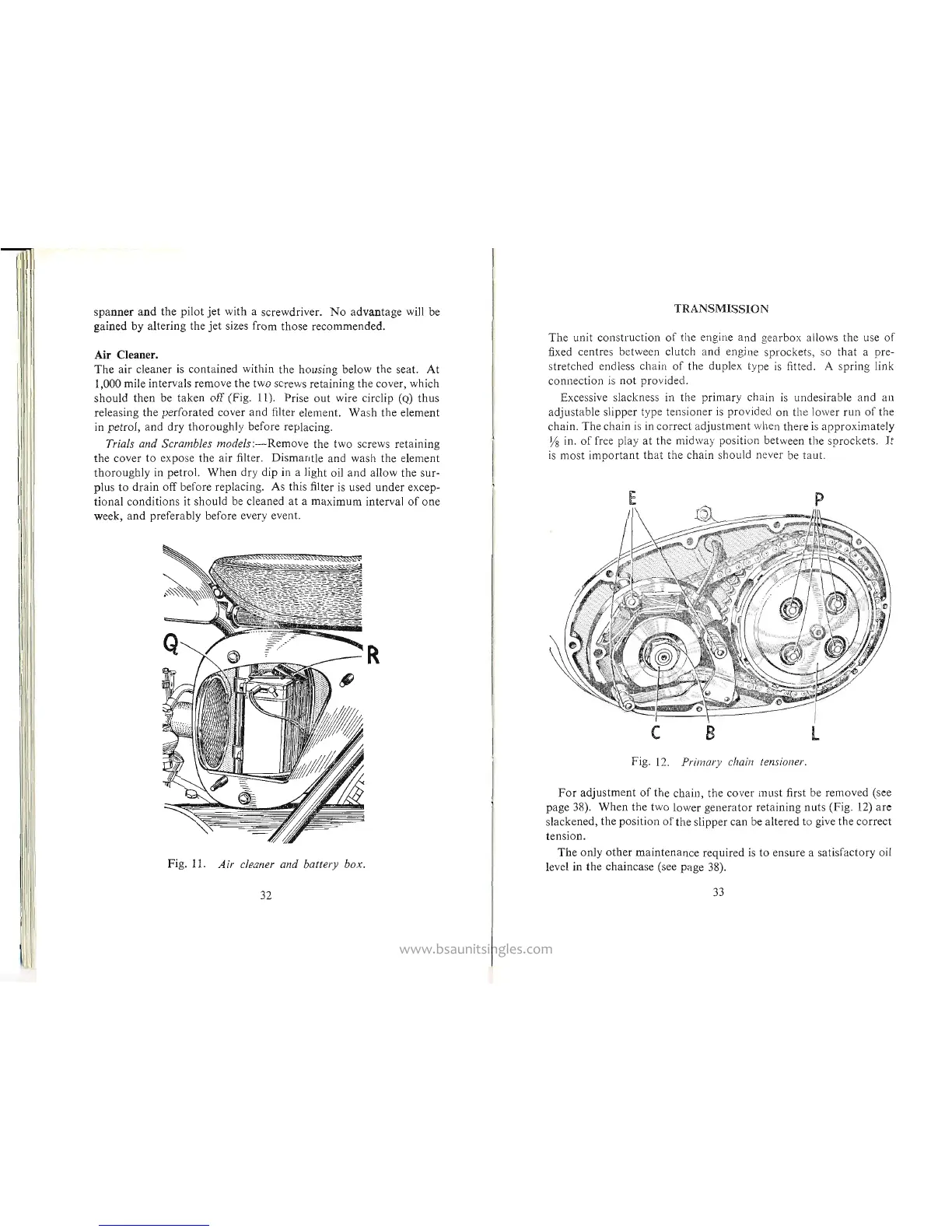 BSA C15 SS80 - Air Cleaner Maintenance; TRANSMISSION AND LUBRICATION; Primary Chain Adjustment