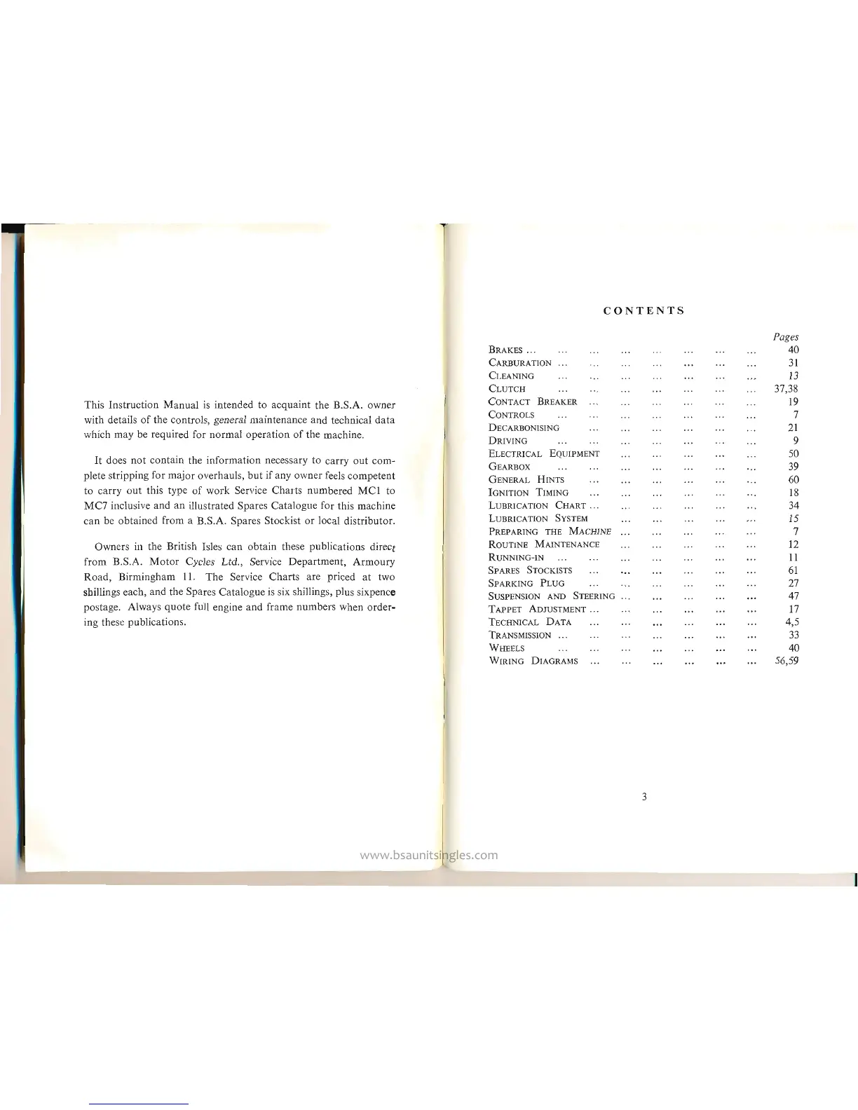 BSA C15 - Contents