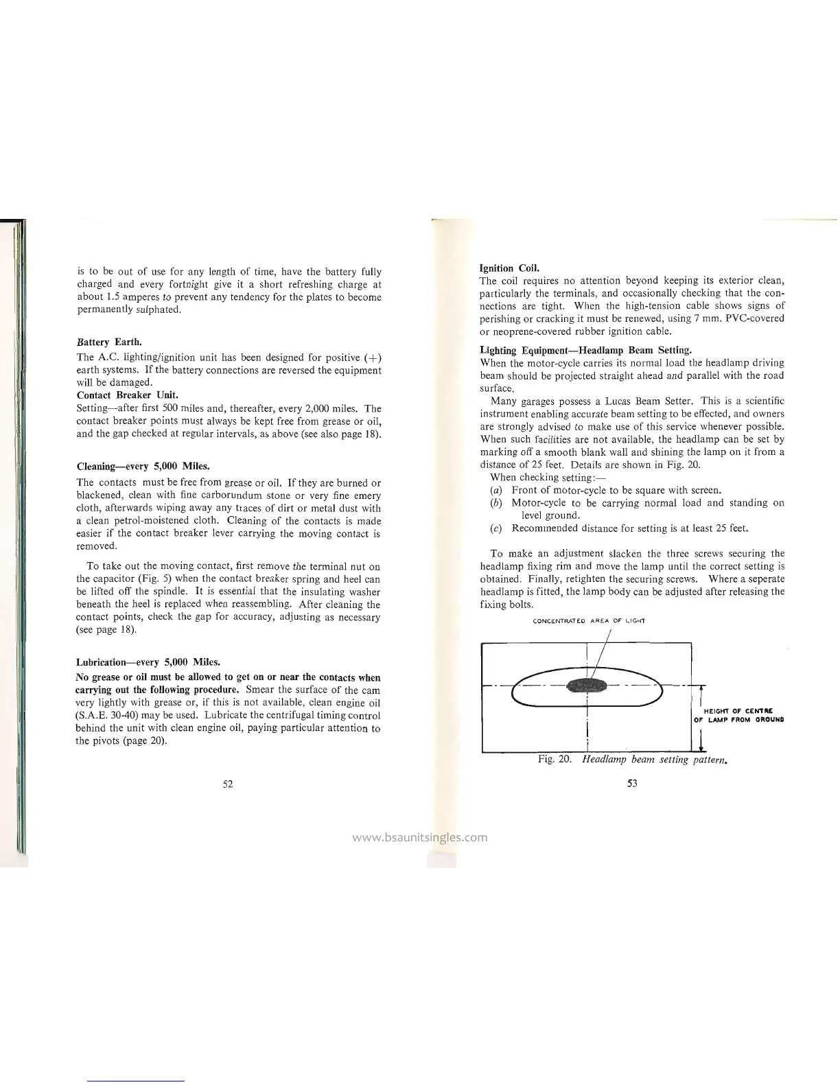 BSA C15T - Battery Earth; Cleaning - Every 5,000 Miles; Lubrication - Every 5,000 Miles; Lighting Equipment - Headlamp Beam Setting