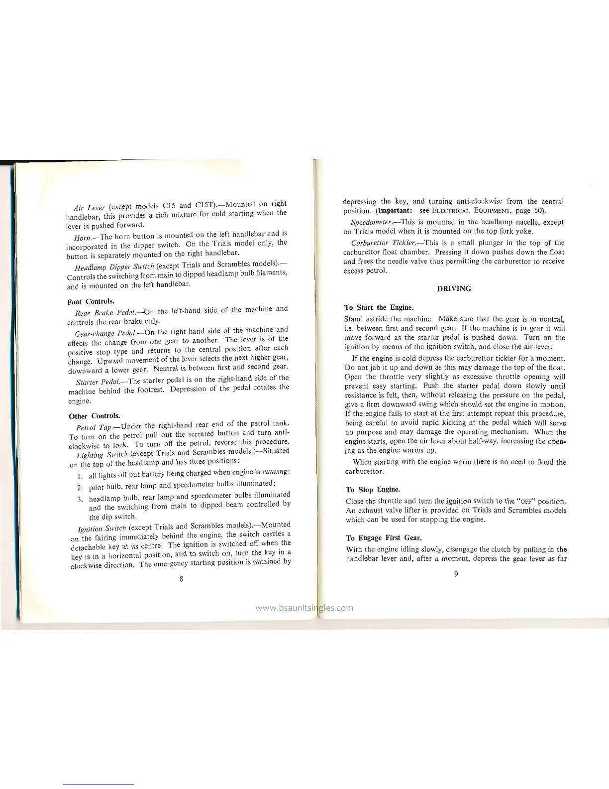 BSA C15T - Foot Control Operation