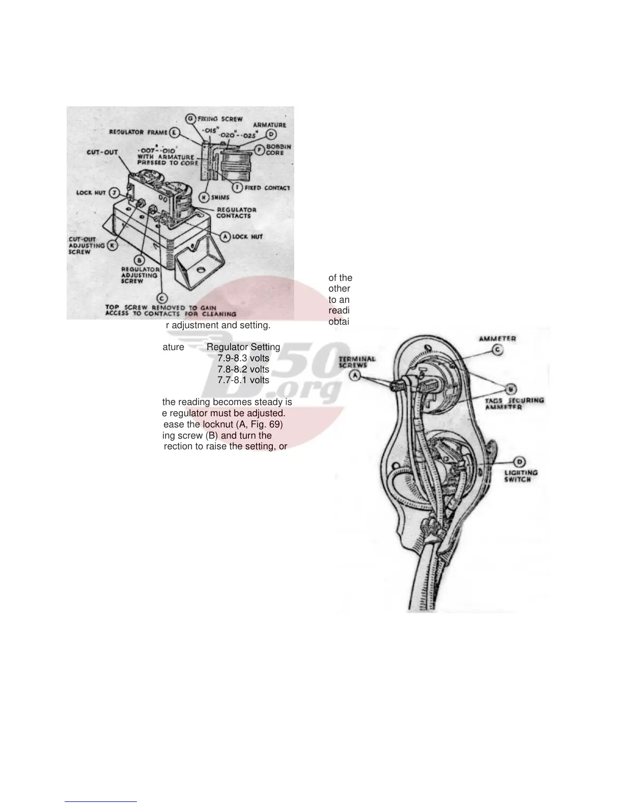 armature (D, Fig. 69) and the regulator frame (E).