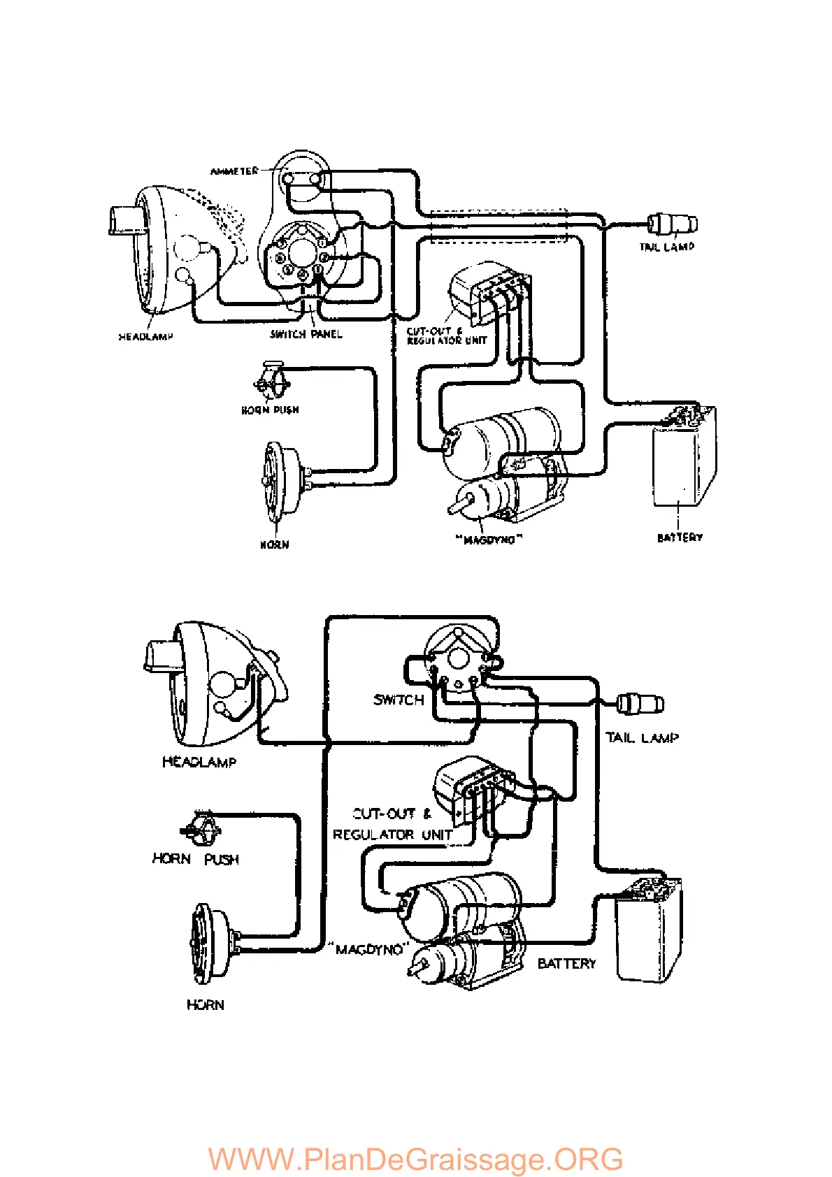 Fig 46B. Simple wiring diagram for models fitted without ammeter.