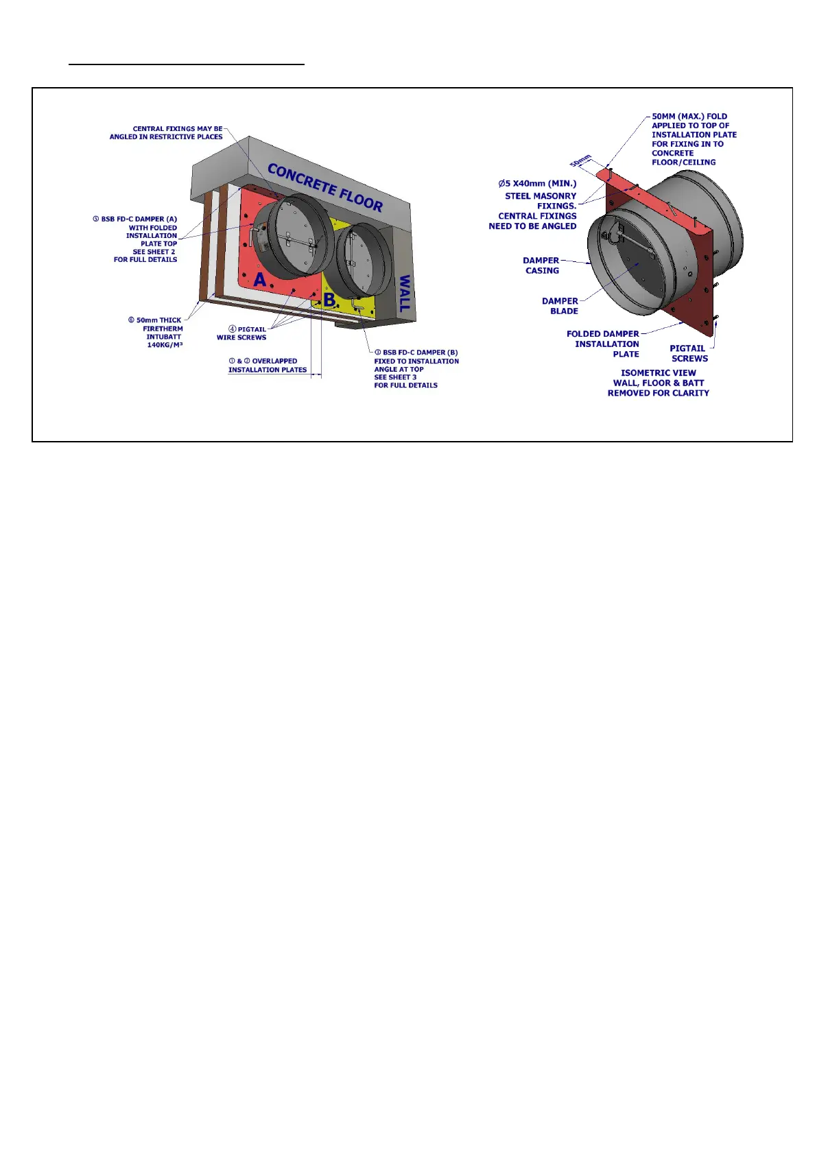 8.1.2 The damper should be installed within and affixed to the top of the aperature as shown in figure 4.