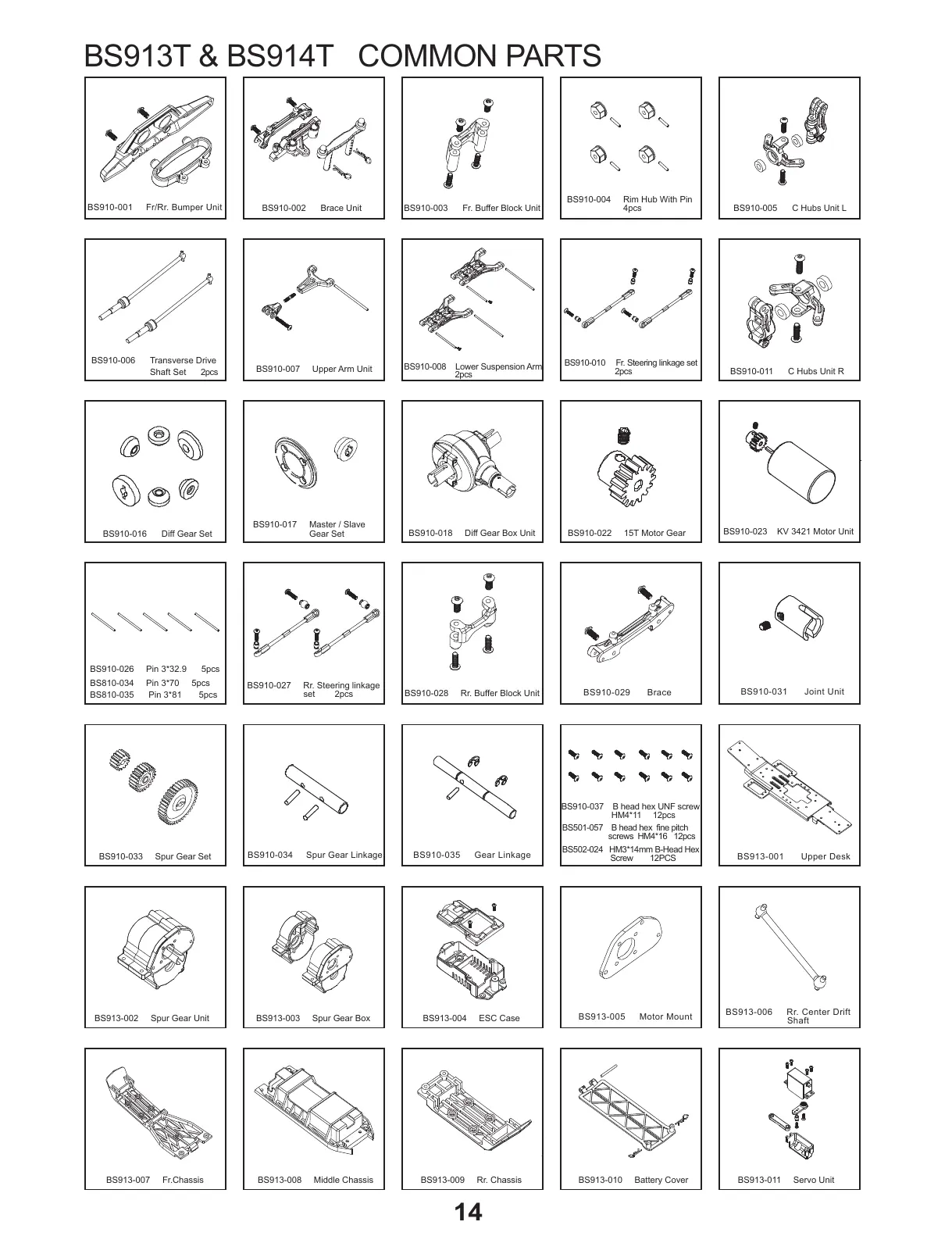 BS913-007 Fr.Chassis BS913-008 Middle Chassis BS913-009 Rr. Chassis BS913-010 Battery Cover BS913-011 Servo Unit