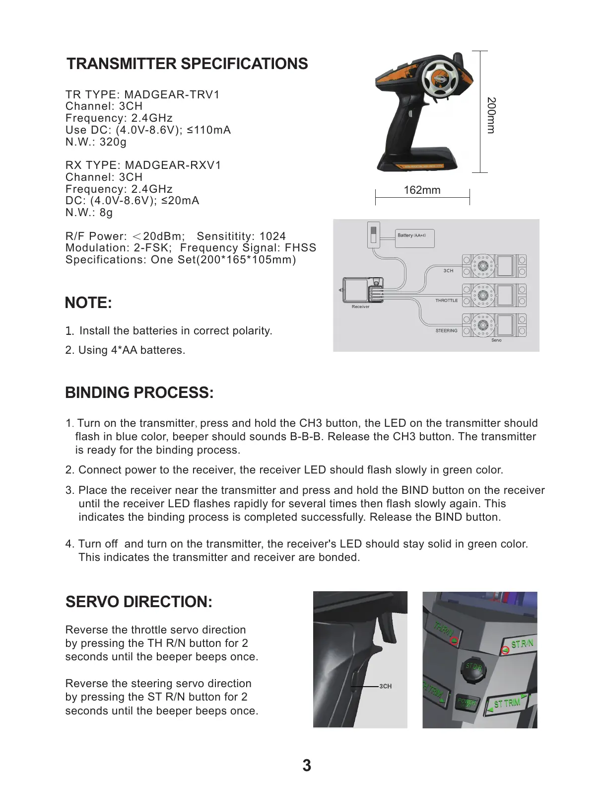 flash in blue color, beeper should sounds B-B-B. Release the CH3 button. The transmitter
