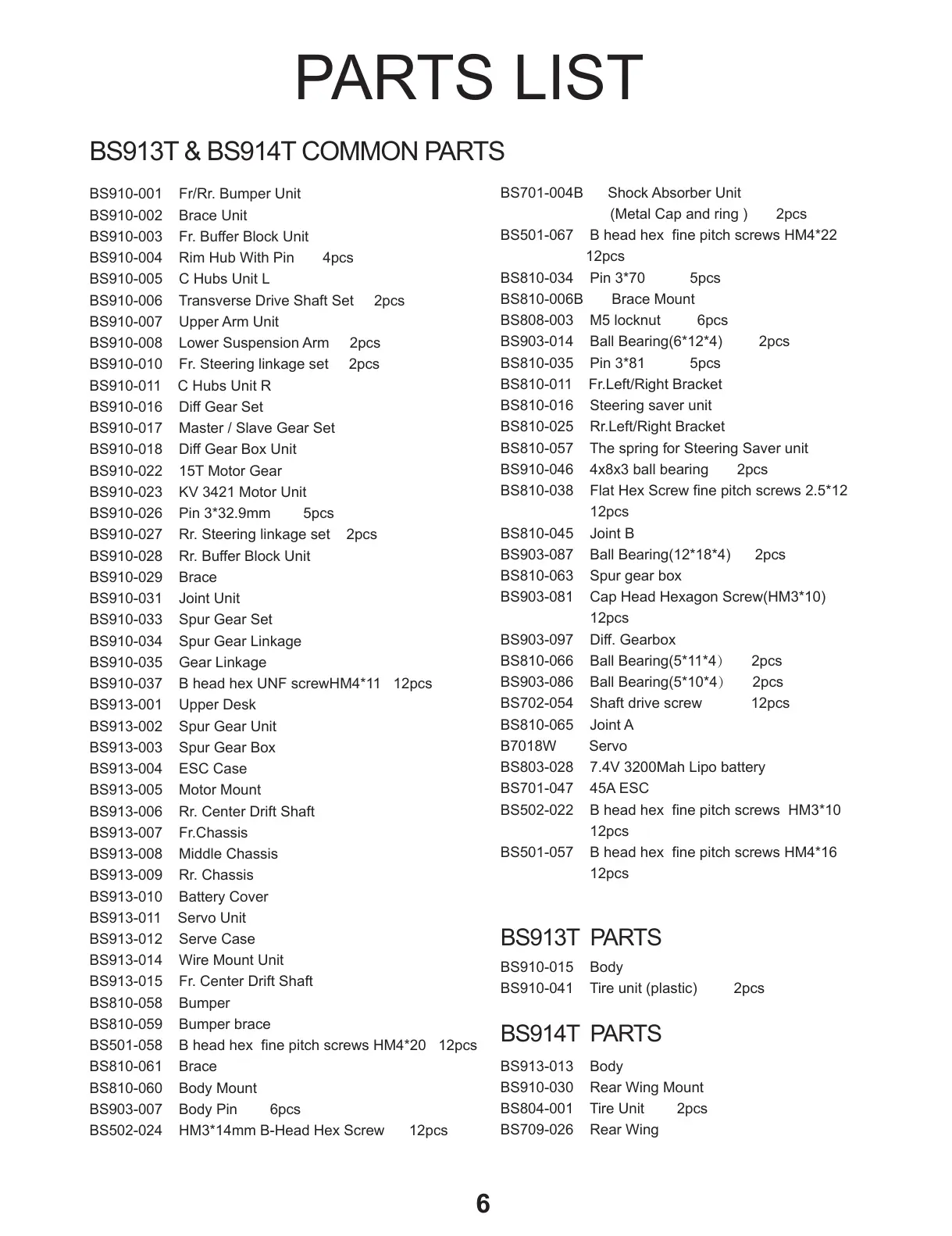 BS913T & BS914T COMMON PARTS