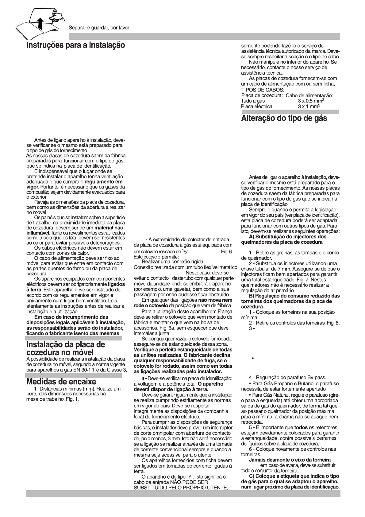 alimentação eléctrica e de gás do aparelho.